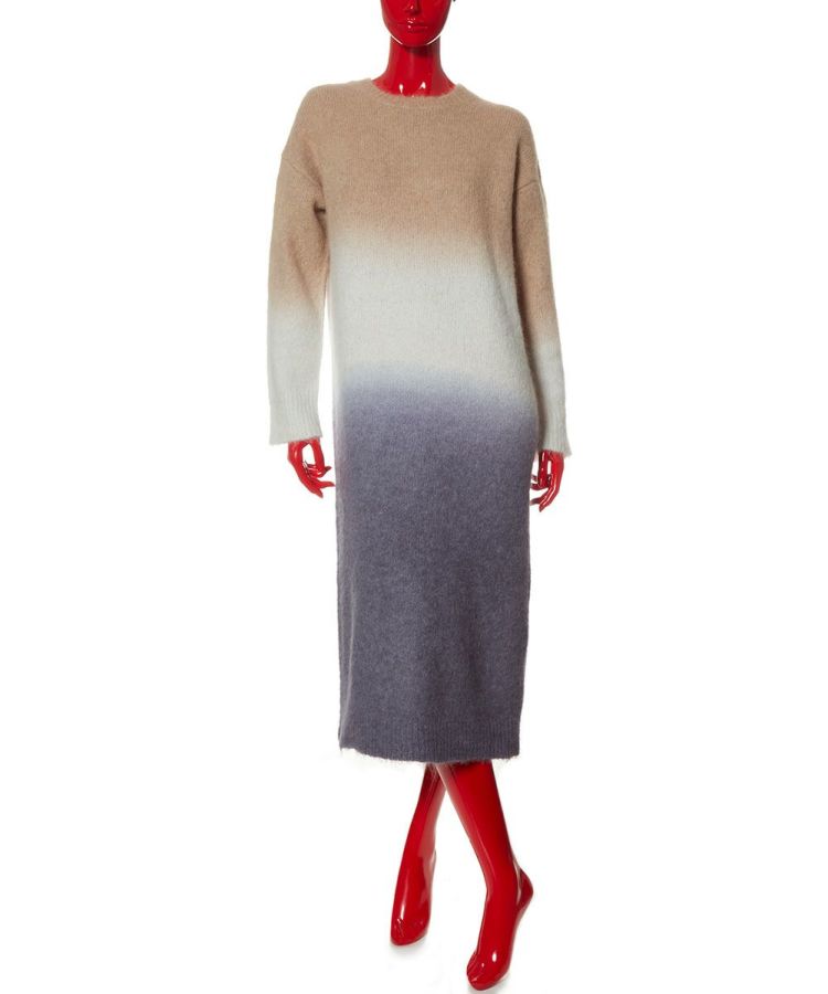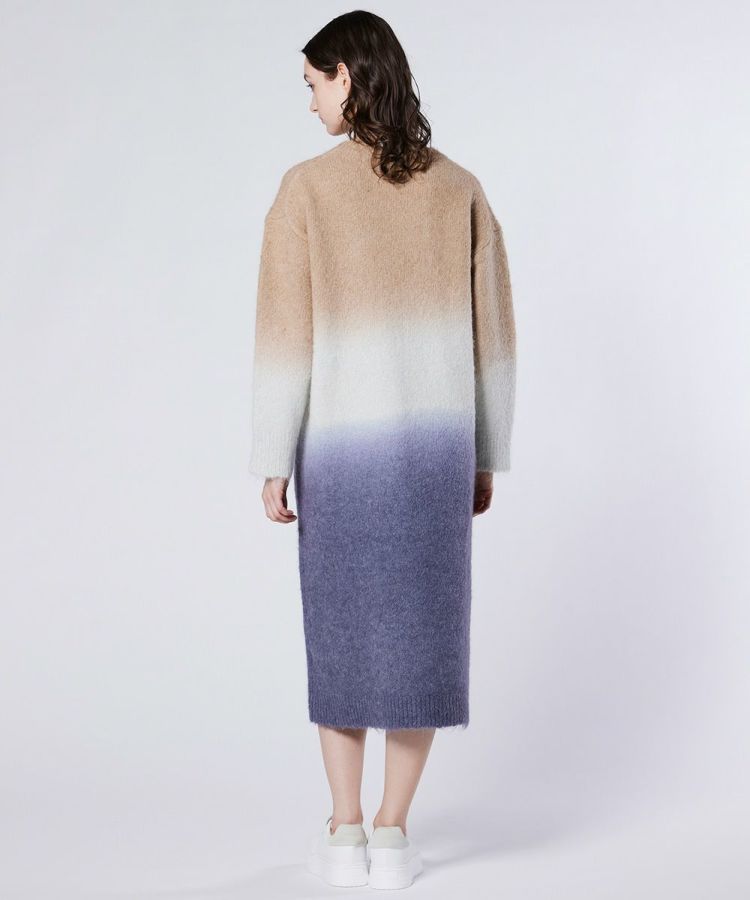 ベージュからダークグレーになるグラデーションが美しいワンピース。シンプルなデザインに表情を添え、1枚で存在感のある着こなしを叶えます。ゆとりのあるシルエットとロング丈が、抜け感のある大人のリラックススタイルを演出。シーズンレスで着回せる、頼れるアイテムです。