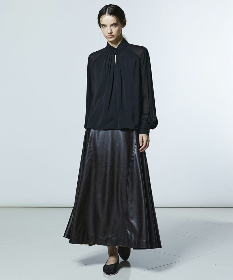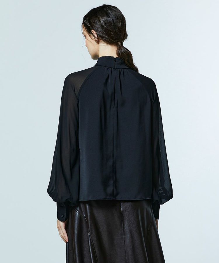 AKKO×Sov./ クロスネックマットサテン シフォンブラウス(WEB限定)
