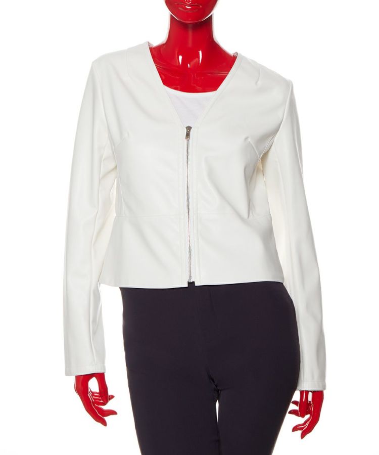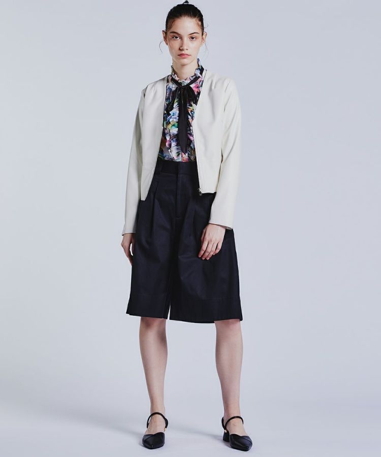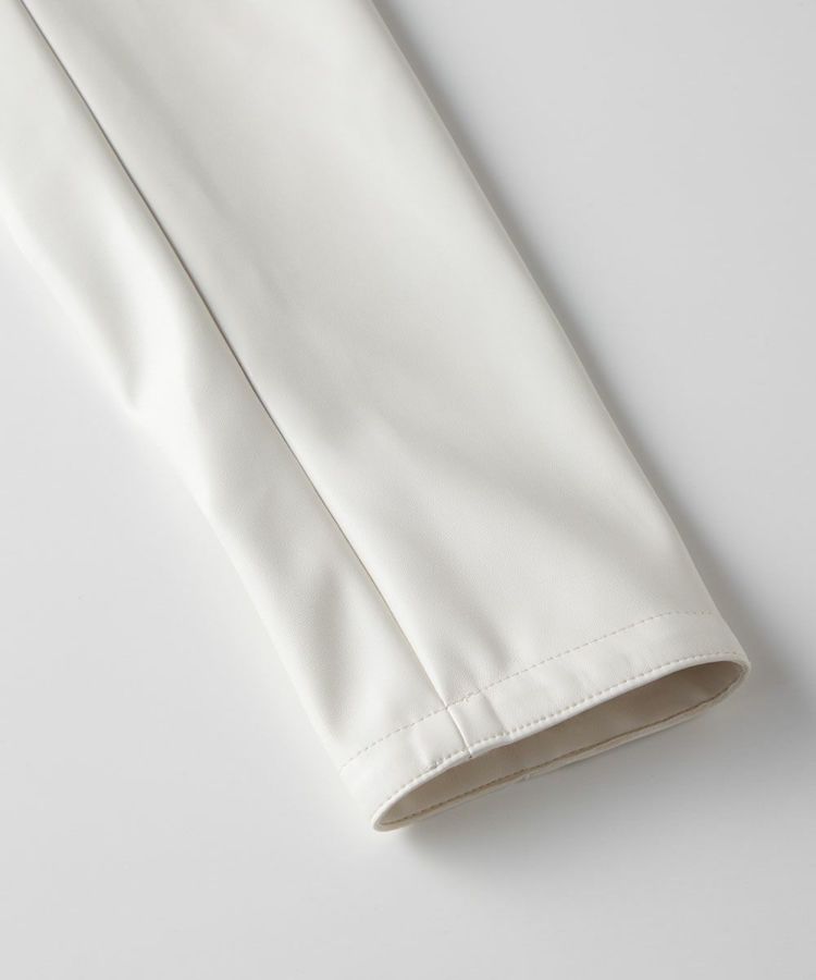 軽やかなホワイトで作ったレザー風ジャケット。ノーカラー仕様に仕上げ、カーディガン感覚で羽織れるのが魅力です。フェイクレザーなので着心地も軽く、長時間着用しても肩が凝らず気軽に取り入れられる一着。今年なら、深みのある色やクラシカルなコーディネートにプラスするのもおすすめです。程よいショート丈なので全身のバランスを取りやすく、すっきり着られるのもポイント。