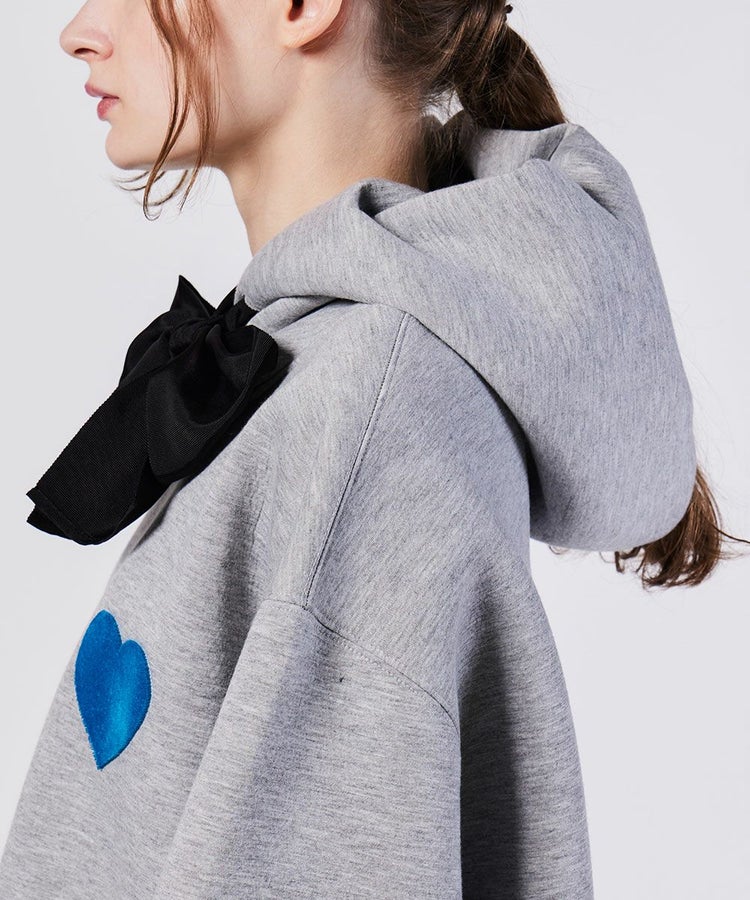 ハートのワッペンと太めのリボンがアクセントになった、オーバーサイズのスウェットパーカー。新色とともに再入荷です。マニッシュな印象のパーカーをダブスタらしくアレンジ。エッジーで大人フェミニンなムードで着られるようにしています。バックにはさりげないロゴ刺繍をON。後ろから見てもデザイン性の高い一枚です。袖に切り替えを作り立体的なシルエットを表現しているのも密かなポイントです。