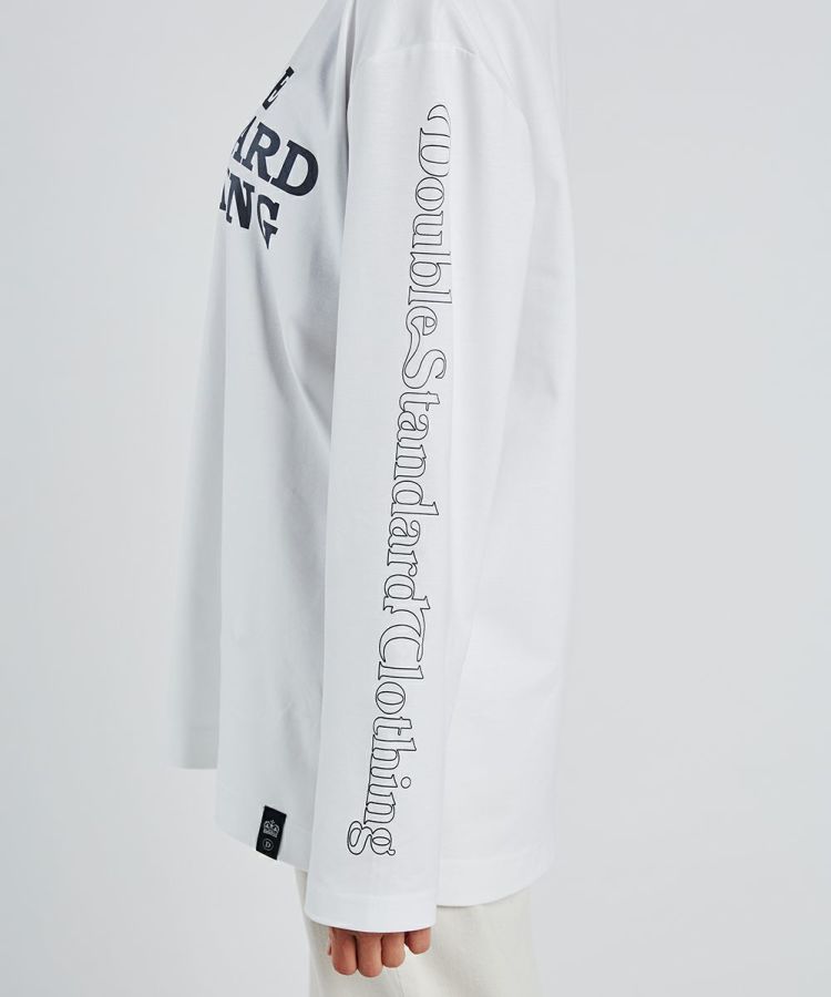 ダブスタのロゴを全面にあしらったロングスリーブTシャツ。袖にもロゴをあしらい、ストリートテイストをプラスしました。着こなし方に合わせてポイントになる、背中のタグや裾のエンブレムもうれしい。また、モノトーンなのでどんな着こなしにも合わせやすいです。一枚あると着こなしの幅が広がるアイテム。