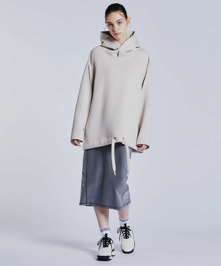 ゆったりとしたシルエットに仕上げたパーカー。程よい肉感で、袖にもゆとりがあるためインナーに重ねてもごわつかず、快適に着こなせるのが魅力です。フードが大きめで小顔効果を狙えるのもうれしいポイント。細身のパンツやショート丈のボトムに合わせるとバランスが良く、メリハリのあるコーディネートが楽しめます。