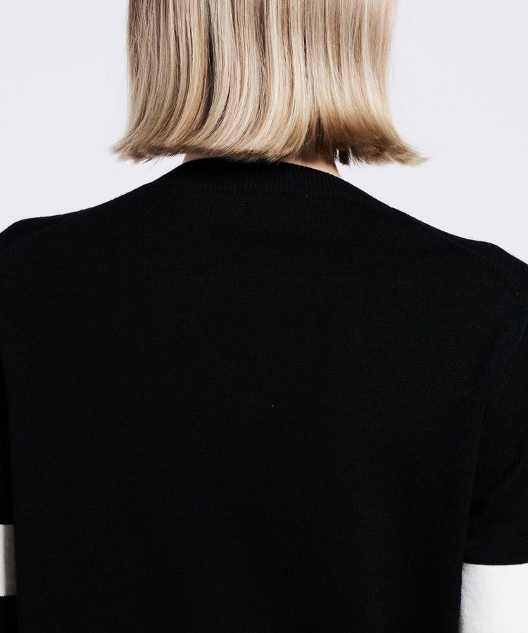 ダブスタ定番のSNOWY糸を使用して編み立てたトップス。コンパクトなシルエットで、すっきりとした着用感も魅力です。配色にこだわったオリジナルロゴが、カジュアルな中にモードなエッセンスを添え、洗練された印象に。さまざまなボトムスと好相性で、着回し力の高い一枚です。