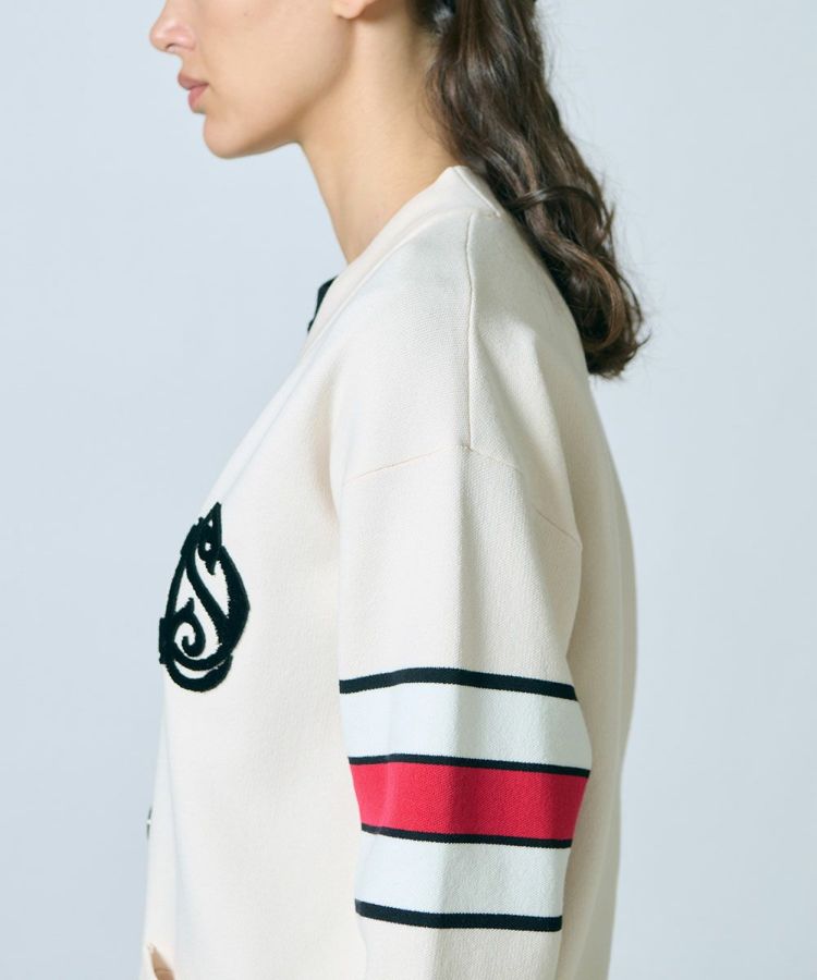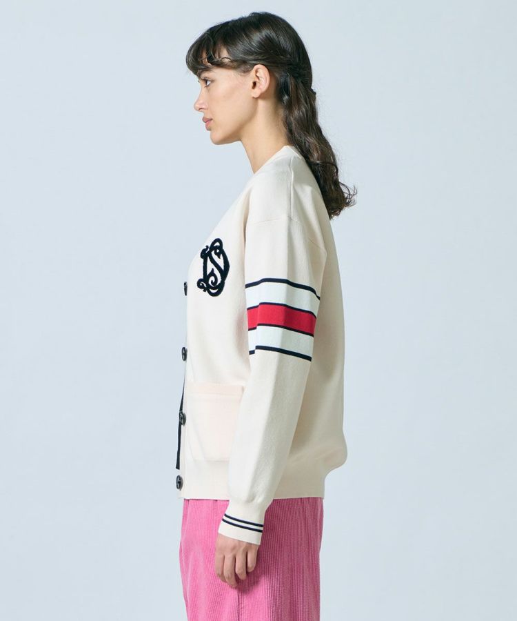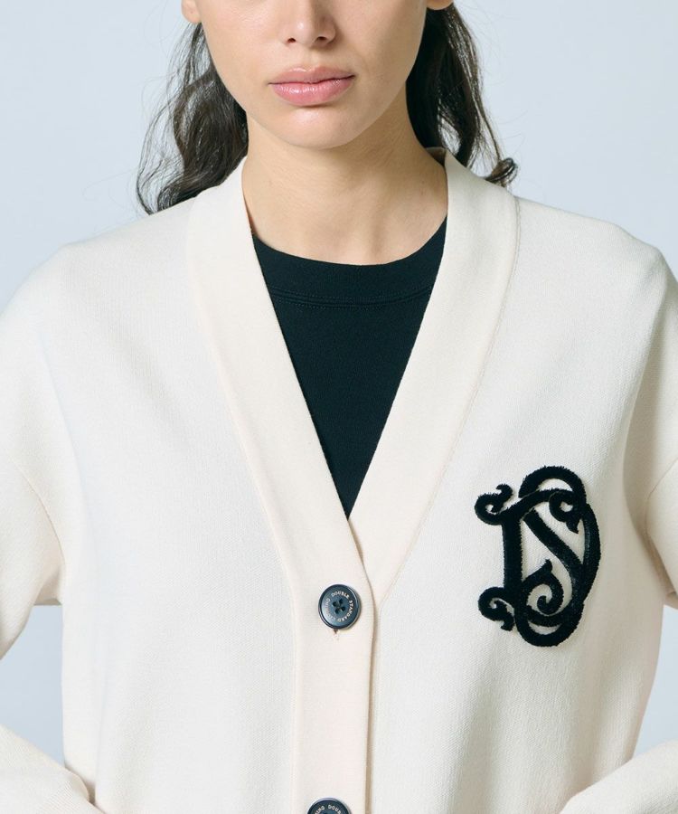 クラシカルな雰囲気が漂う大人のレターカーディガン。胸元に大胆にあしらった「D」と「S」のレタリングが、アイビースタイルを引き立てます。プリーツスカートやスラックスと合わせれば、スクールライクな着こなしが完成。夏の冷房対策にもぴったりな一枚は、ワードローブに加えておきたい万能アイテムです。
