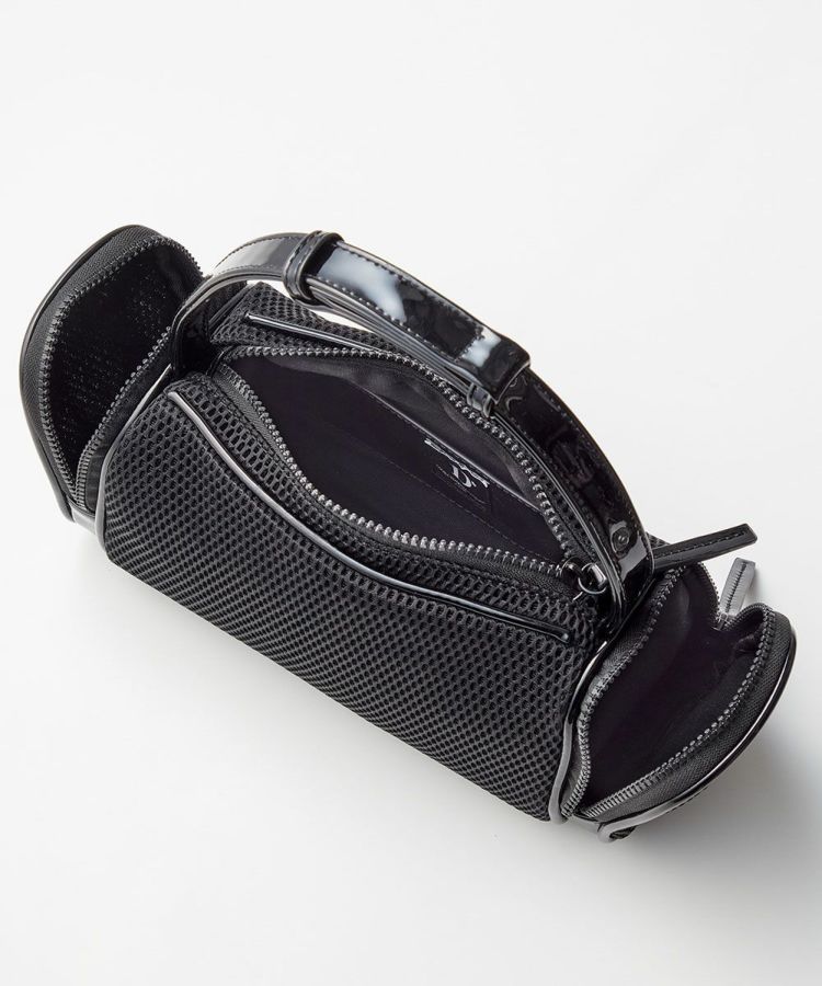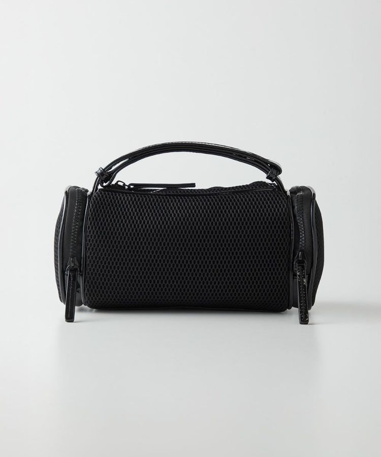 ユニークなボストン型とスポーティーなメッシュ素材を掛け合わせたミニバッグ。ハンドルや接続部など、パーツ部分はエナメル感を出しアクセントにしました。ブラックながらもデザイン性が高いため、手持ちした時にコーディネート全体をモダンに演出。カジュアルコーデはもちろん、キレイめコーデのハズしとしても活躍し、いろんな着こなしに合わせやすいのが魅力です。