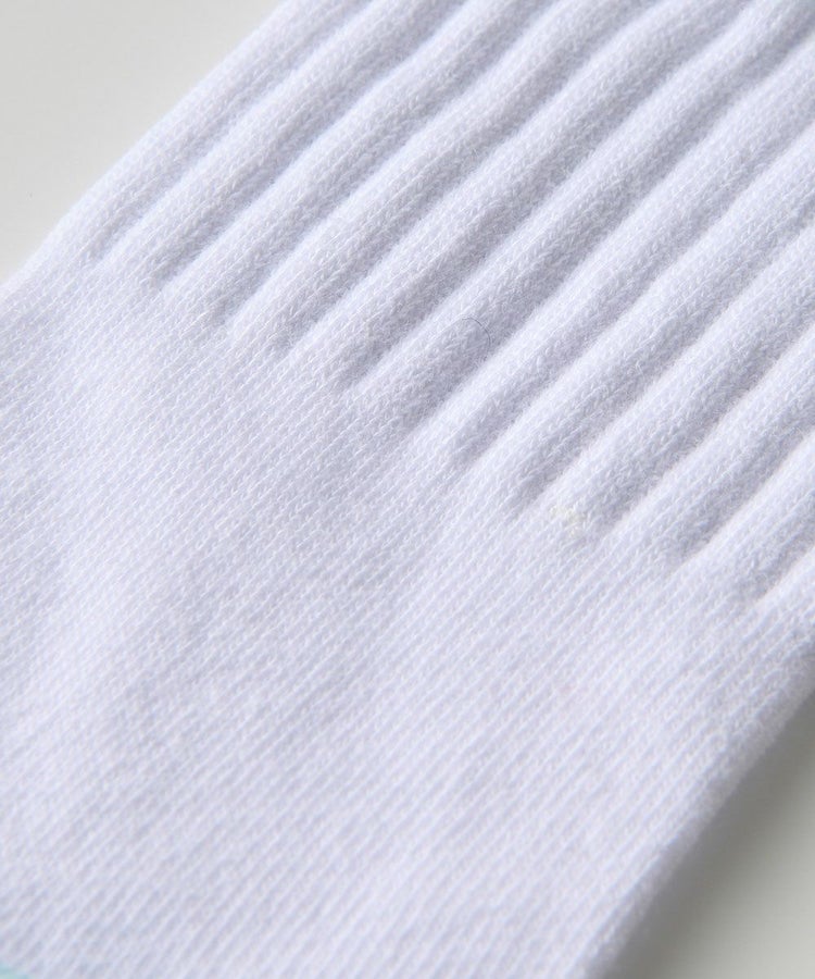 爽やかなカラーリングが目を惹くソックス。サイドにはブランドの頭文字をあしらい、さりげないデザインアクセントを加えました。スクールライクなデザインで、スニーカーやローファーとの相性も抜群。足元にほどよいアクセントを添え、スタイリングを引き締めてくれるアイテムです。
