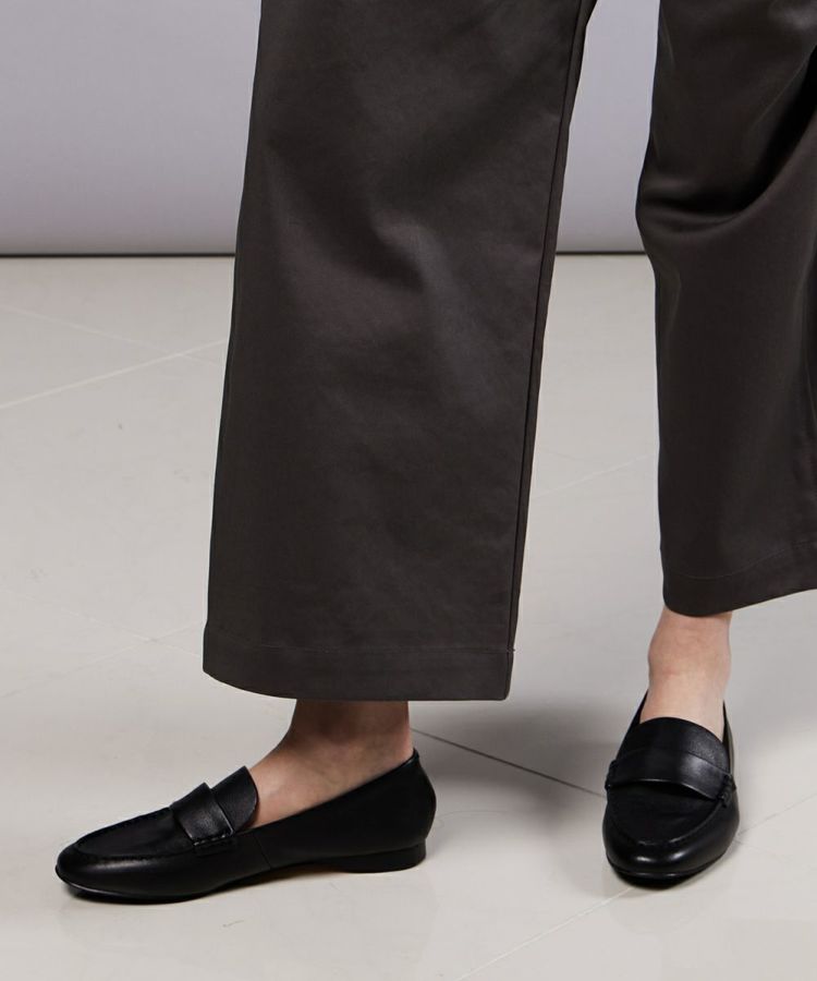 シンプルながら洗練されたデザインが魅力のローファー。表情豊かなシボ感のある牛スムースレザーを贅沢に使用し、上質感漂う一足に仕上げました。コンパクトなフォルムが足元をすっきりと見せてくれるのも魅力。カジュアルなデニムはもちろん、フェミニンなスカートにもなじみ、オン・オフ問わず活躍する一足です。