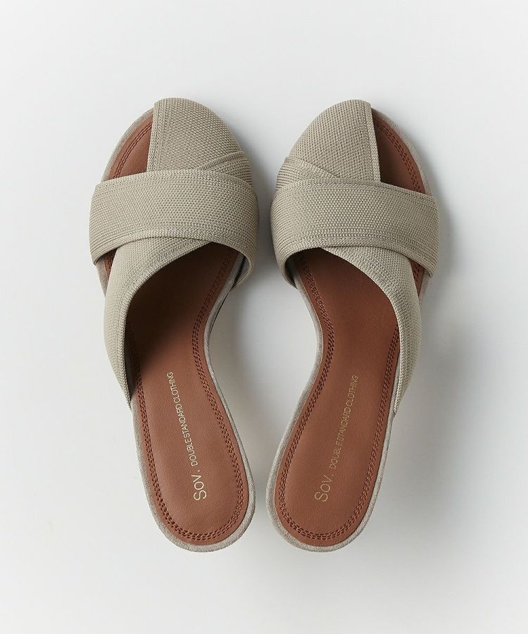 トゥ部分にひと工夫をプラスしたサンダル。見る角度によってミュールにもパンプスにも見えるユニークなデザインです。親指部分を覆うことで安定感を高め、また、伸縮性のあるバンドを使うことで歩いた時の負担を少なくしました。5.5cmという絶妙なヒールの高さもポイント。程よい美脚効果がありながらも履いていて楽なので、デイリーに使いたくなる一足です。