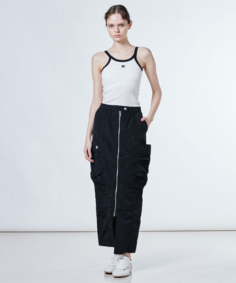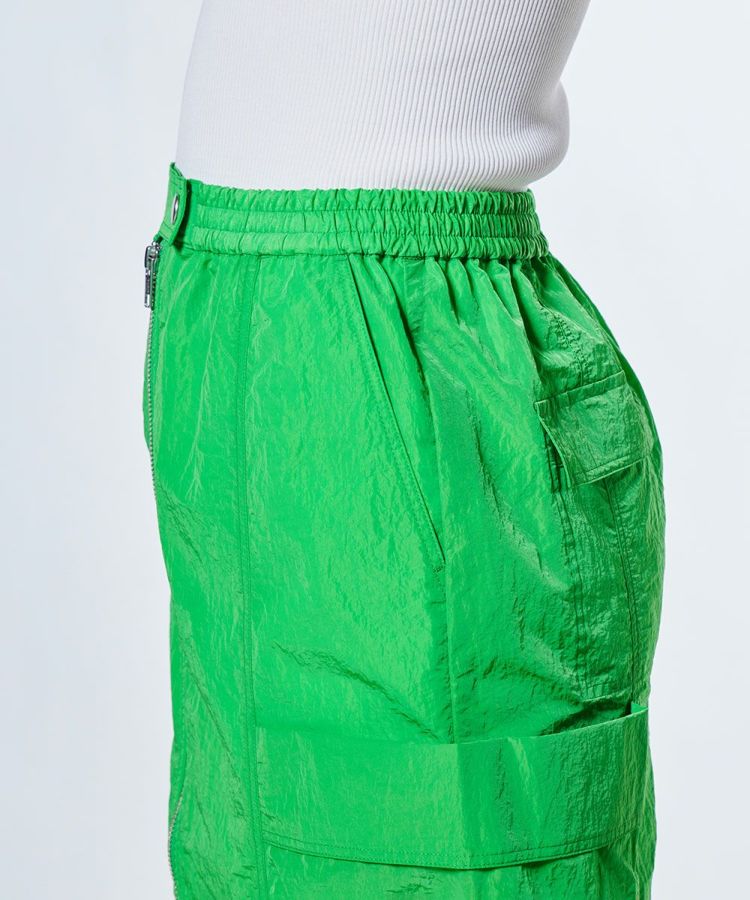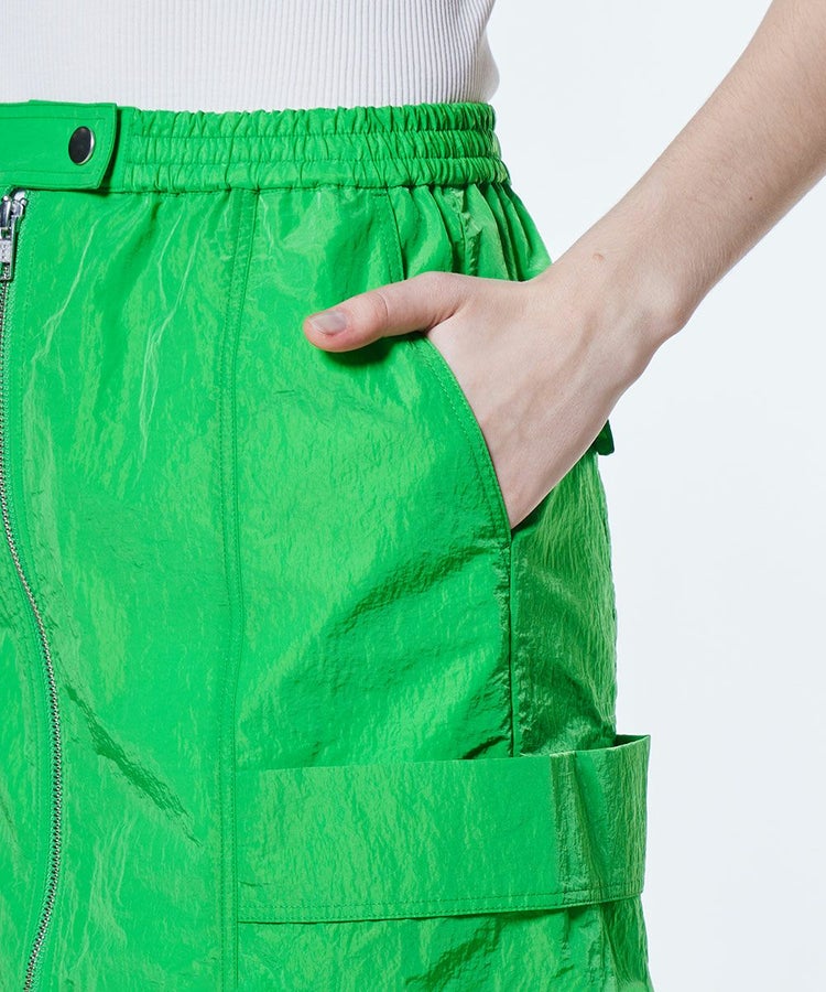 ほのかにグロス感のあるタフタ生地を使用した、ロングスカート。フロントはジップ仕様で、お好みの位置に調節してスリットとしても楽しめます。カラーは鮮やかなグリーンとシックなブラックの2色展開。同素材のジャケット(型番:2505080252)とセットアップで合わせると、よりスポーティーな雰囲気で着こなせます。