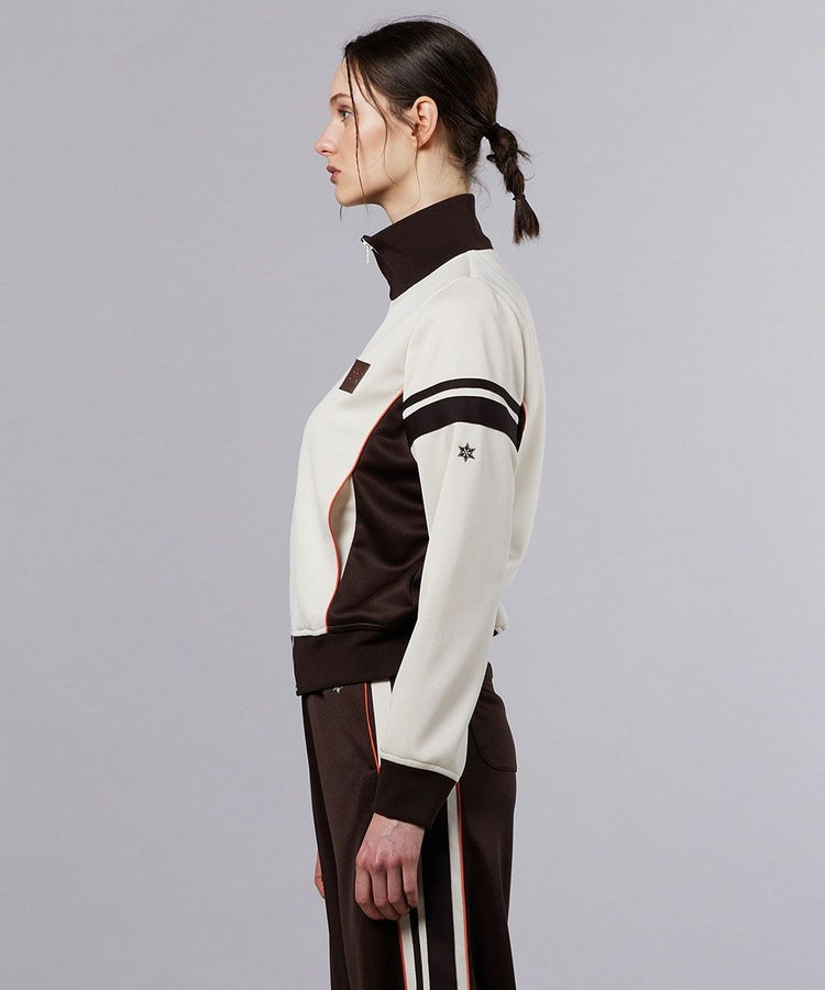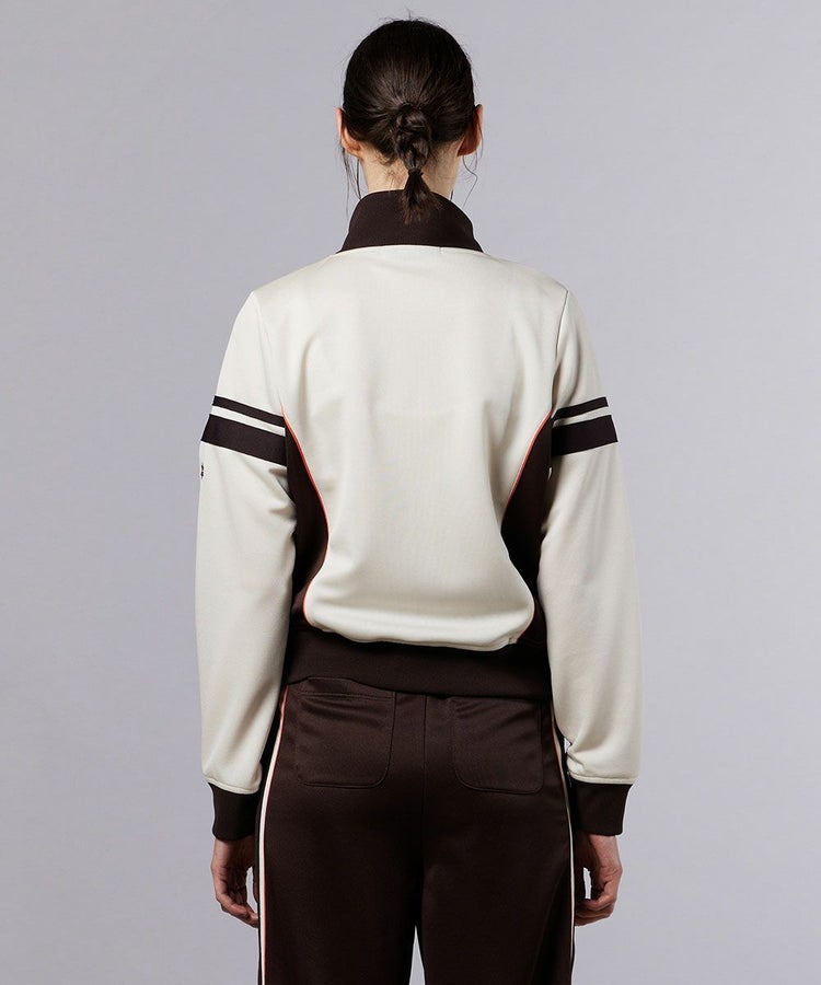 吸汗・速乾性に優れた高機能ポリエステルジャージ素材を使用したトラックジャケット。滑らかな肌ざわりと上品な光沢感が特徴で、スポーティーでありながらも高級感のある佇まいに仕上げました。オリジナルのレザースライダーやワッペンパッチが、ディテールにエレガンスを添え、スタイリッシュな印象をプラス。同素材のトラックパンツ(型番:2506271253)と合わせれば、セットアップで完成度の高い大人のスポーツミックススタイルが楽しめます。