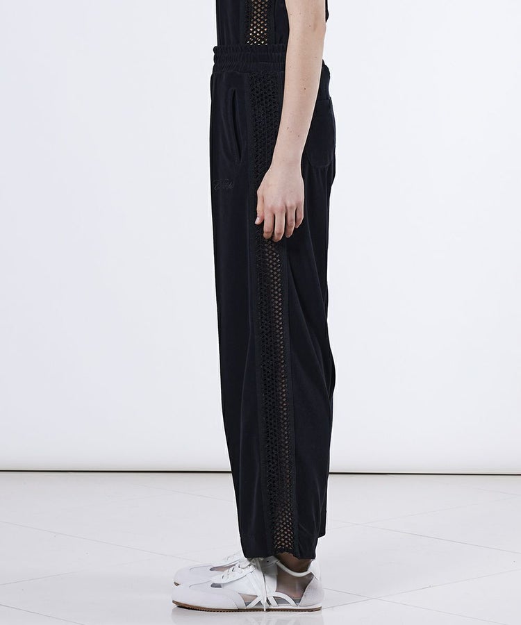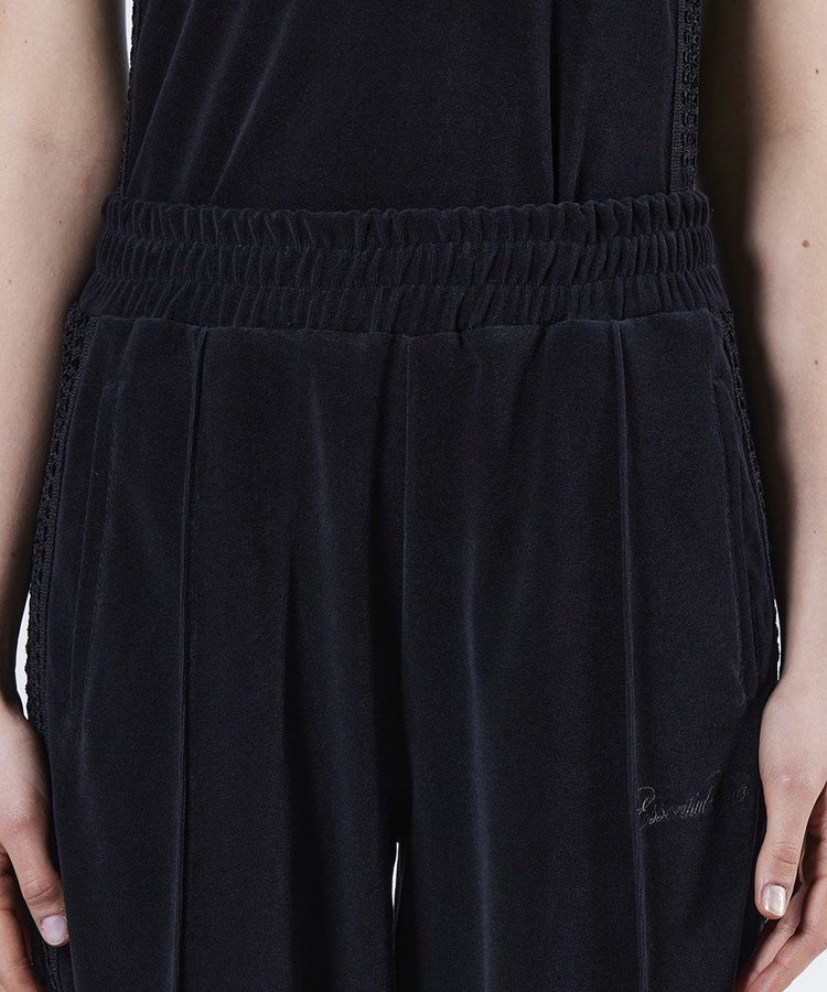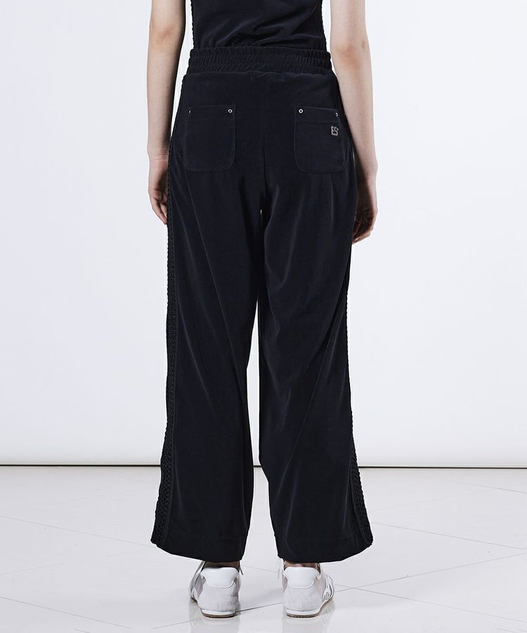 ゆったりとしたバレルシルエットが、トレンド感を演出するパンツ。心地よい肌ざわりのパイル生地を採用し、快適な穿き心地を実現しました。サイドラインにはゴムレースを施し、さりげない肌見せが女性らしいエッセンスに。同素材のトップス(型番:2508120253)と合わせたリラクシンなセットアップスタイルもおすすめです。