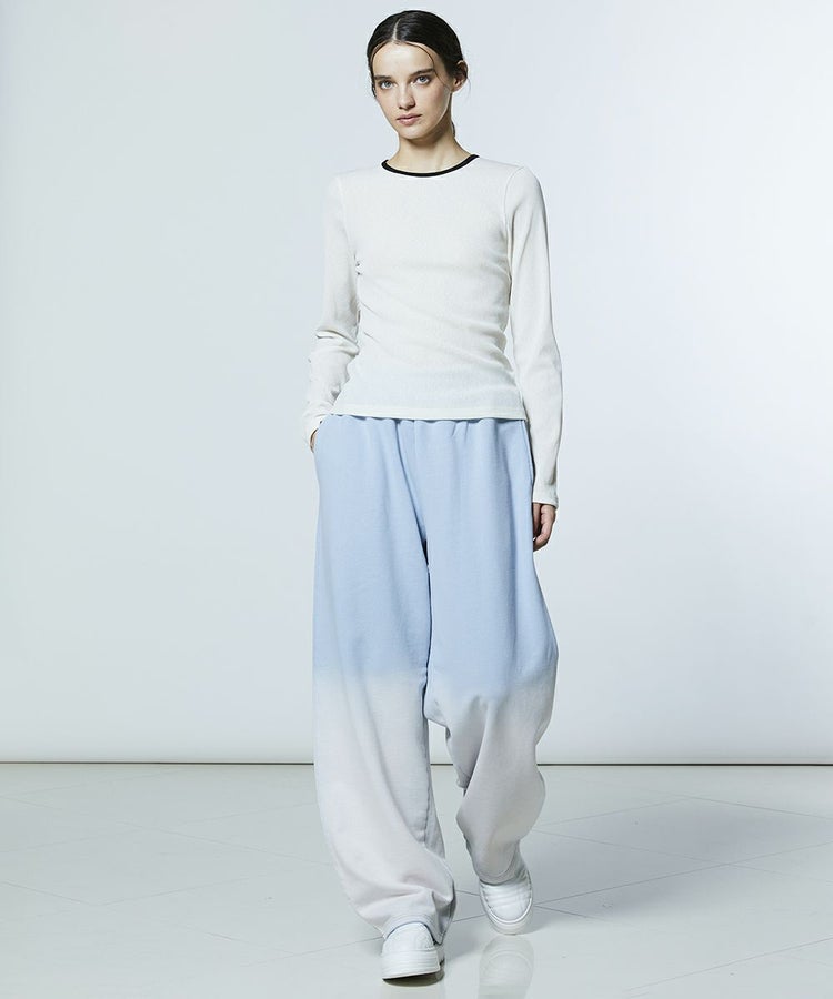 ゆとりのあるシルエットが、リラクシンなスウェットパンツ。さりげないグラデーションで奥行きのあるカラーリングに仕上げました。ウエストはゴム仕様で、快適な穿き心地も魅力。同素材のパーカー(型番:2508120261)と合わせれば、統一感のあるセットアップスタイルを楽しめます。