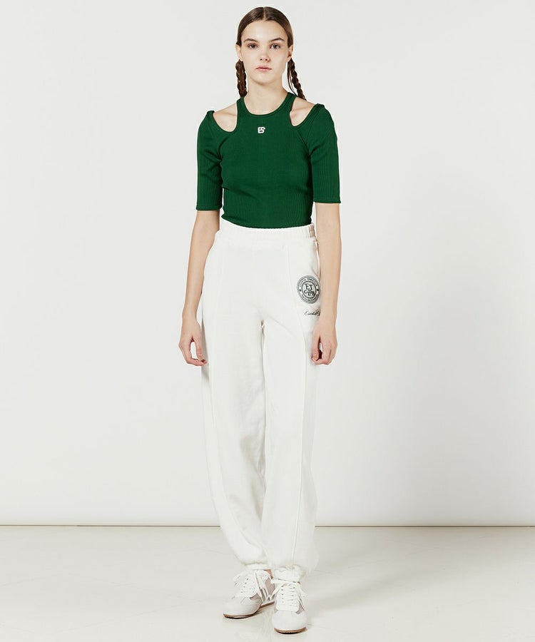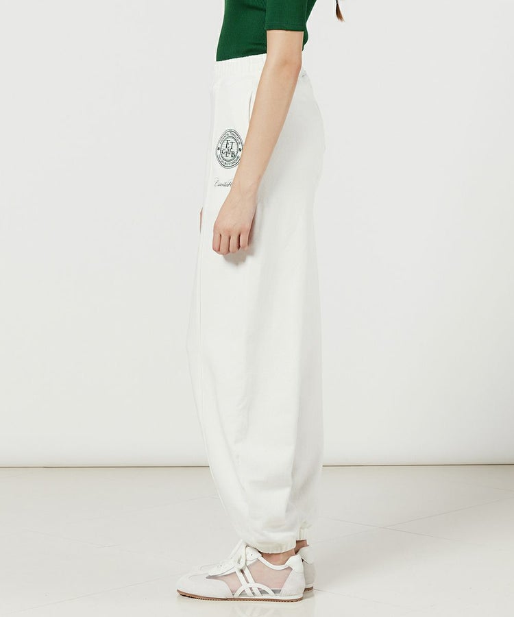 ポケットにエンブレムの刺繍をあしらい、今季らしいアイビールックに仕上げたパンツ。丸みのあるバルーンシルエットでファッショナブルにアレンジしました。タックを入れることで、スポーティーでありながらきちんと感もプラス。コーディネート全体にこなれ感を出してくれるアイテムです。同素材のプルオーバー(型番:2508110251)と合わせて着こなすと、シルエットのメリハリが出ておすすめ!
