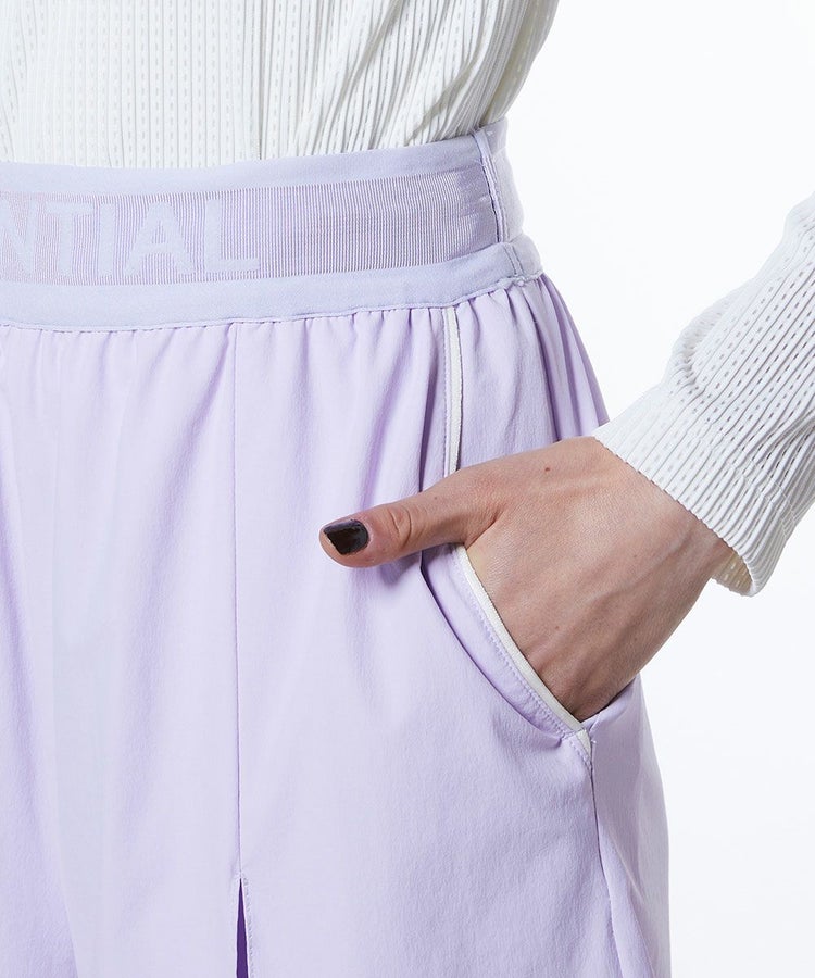 鈴木紗理奈とのコラボレーション第2弾として登場したキュロットパンツ。軽やかで動きやすいストレッチタフタ素材を使用し、ソフトな手ざわりとさらっとした清涼感が魅力です。また撥水、接触冷感、紫外線防止と夏に嬉しい機能を備えています。ウエストはゴム仕様で、リラックス感のある快適な履き心地を実現。バックスタイルにはプリントと刺繍、さらにパイピングポケットを施しどの角度から見ても抜かりのないデザインに仕上げました。