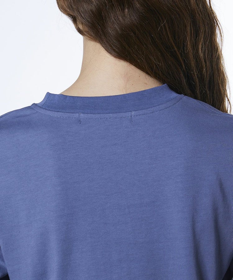 フロントのメッセージプリントが程よいアクセントになったロングTシャツ。裾をアシンメトリーに仕上げることで、シンプルながらもこなれ感のある一枚に仕上げました。カラーはコーデに馴染みやすいダスティーブルーと、着回し力の高いブラックの2色をご用意。ショート丈のデザインはロングスカートと好相性で、バランスの取れたスタイリングを叶えてくれます。