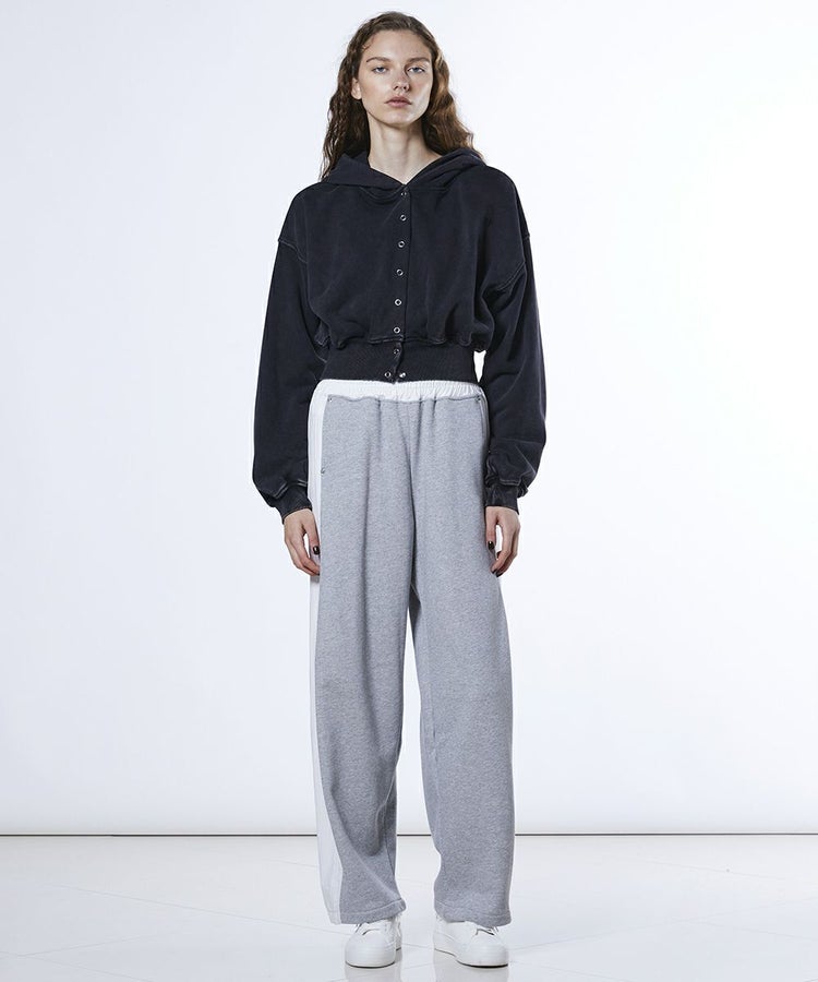 ミニマルなシルエットで着回しやすいカーディガンタイプのパーカー。上質な裏毛素材にムラバイオウォッシュ加工を施し、ヴィンテージライクな風合いに仕上げました。長めのリブがさりげないアクセントとなり、シンプルながらも存在感のあるデザイン。同素材のボトムス(型番:2506081261)と合わせれば、統一感のある大人のセットアップスタイルが完成します。