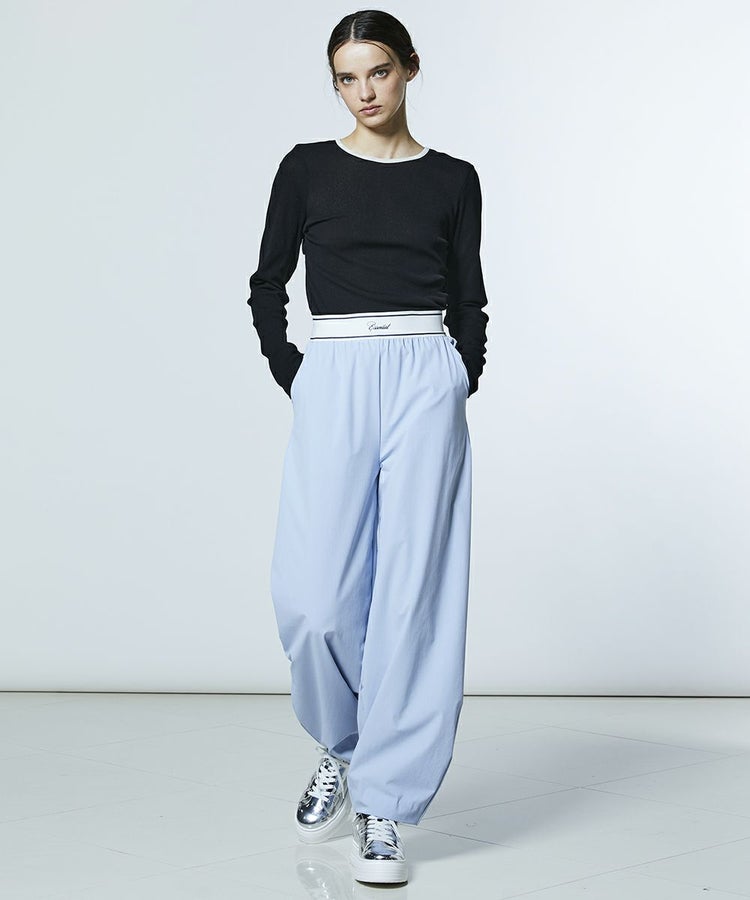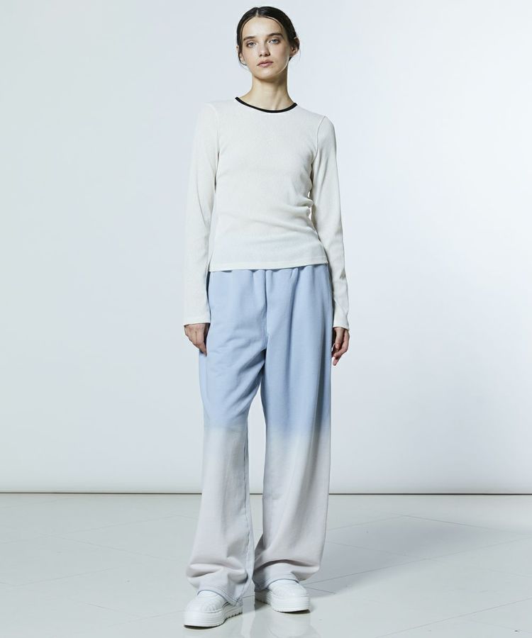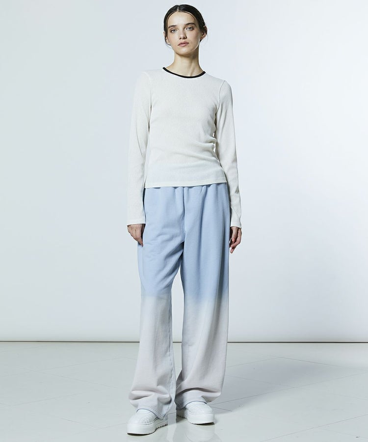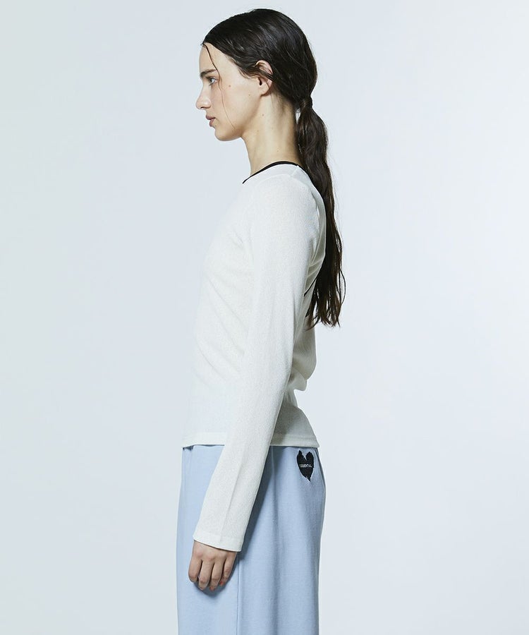 さりげないバイカラーがアクセントになった、シンプルなデザインのカットソー。バックには大胆にカッティングを施し、ヘルシーな肌見せを楽しめる一着に仕上げました。使い勝手の良いオフとブラックの2色展開。シンプルながらセンシュアルな表情を備え、一枚でさらりと着るのはもちろん、レイヤードスタイルのインナーとしても活躍します。