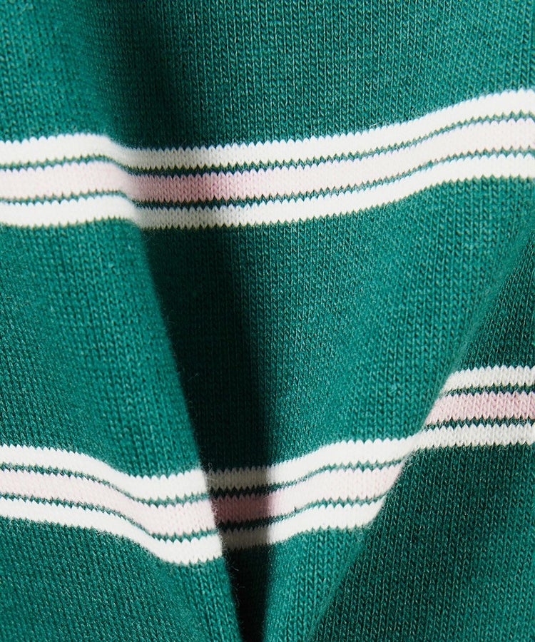 ノスタルジックな配色がかわいい、ボーダー柄のTシャツ。コンパクトなシルエットに加え、アシンメトリーな裾のデザインがワンポイントになっています。どんなボトムと合わせてもバランスが決まりやすいのもうれしいポイント。柔らかな天竺素材で、着心地も快適です。