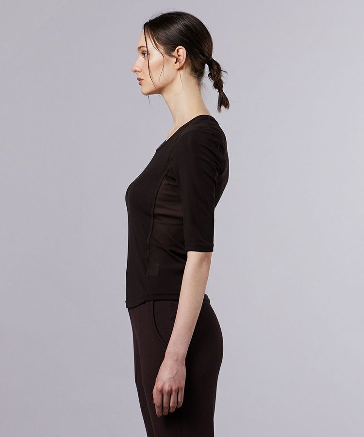 肌ざわりが心地よく、手に取るだけで上質な風合いを感じられるベアフライス素材のトップス。ストレッチ性にも優れており、長時間の着用でも快適さをキープしてくれます。身体に程よくフィットするタイトなシルエットは、ボリュームのあるボトムスとのバランスも取りやすく、スタイリングの幅を広げてくれる優秀な一枚。シンプルながらも美しいラインを引き立て、デイリーに活躍してくれます。