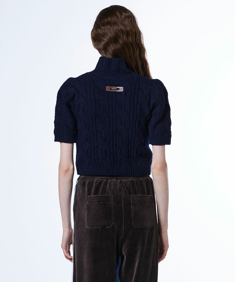 ボリューム感のある片畦編みで仕上げたショートニット。シンプルながらもあえて半袖にすることで、季節感のあるこなれたスタイリングが楽しめます。カラーはコーディネートに合わせやすいオフホワイトとネイビーの2色展開。1枚での着こなしはもちろん、同素材のバラクラバやアームウォーマーと合わせれば、違った表情のレイヤードスタイルも楽しめます。