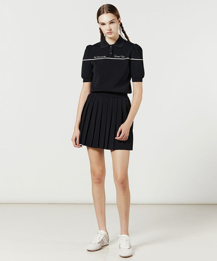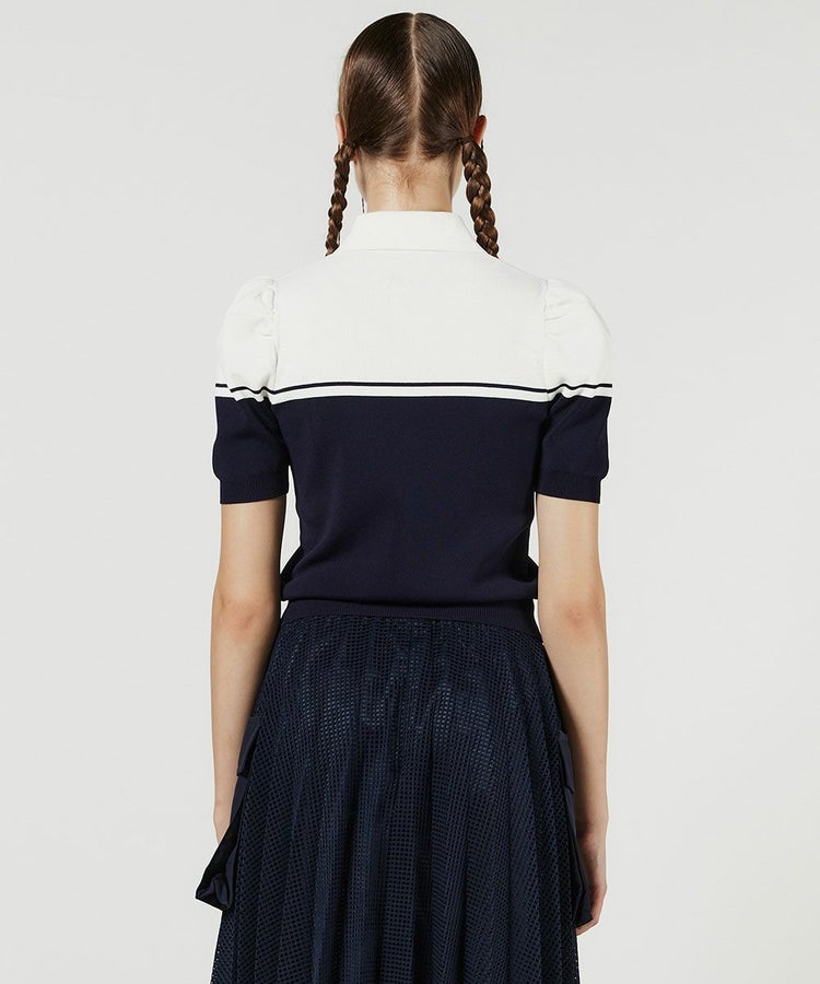 バイカラーがレトロかわいいニットポロシャツ。パフスリーブが腕のラインをきれいに演出し、フェミニンな印象を与えてくれます。コンパクトなフォルムもポイントで、ボトムとのバランスを取りやすくスタイルアップ’を狙えるのがうれしい。大人かわいいスポーツMIXコーデに取り入れたい一枚です。