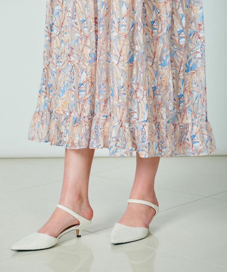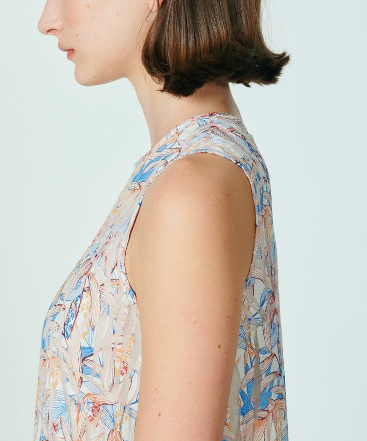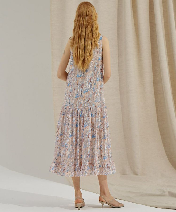 美しい光沢感とさらっとした風合いが特徴的なノースリーブワンピース。すとんとした落ち感がきれいな生地のため、動くたびに揺れるドレープがエレガントに魅せてくれます。落ち着いたカラーリングで、総柄でありながらも派手になりすぎず、大人シックな装いに。涼しげでありながら、上品さが漂うアイテムはパンプスとの相性も抜群です。