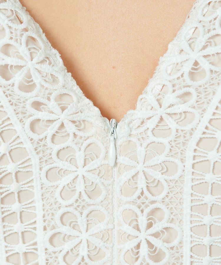 すっきりとしたシルエットが大人っぽいワンピース。レースをパネル柄に再構成し、CORCOVADOオリジナルの繊細なデザインに仕上げました。袖部分にもレースを施し、ボリューム感のあるフラッタースリーブにしたことで、腕まわりの華奢見えが叶います。カラーはフェミニンな装いのホワイトと、シックな雰囲気のネイビーの2種類の中からお選びいただけます。