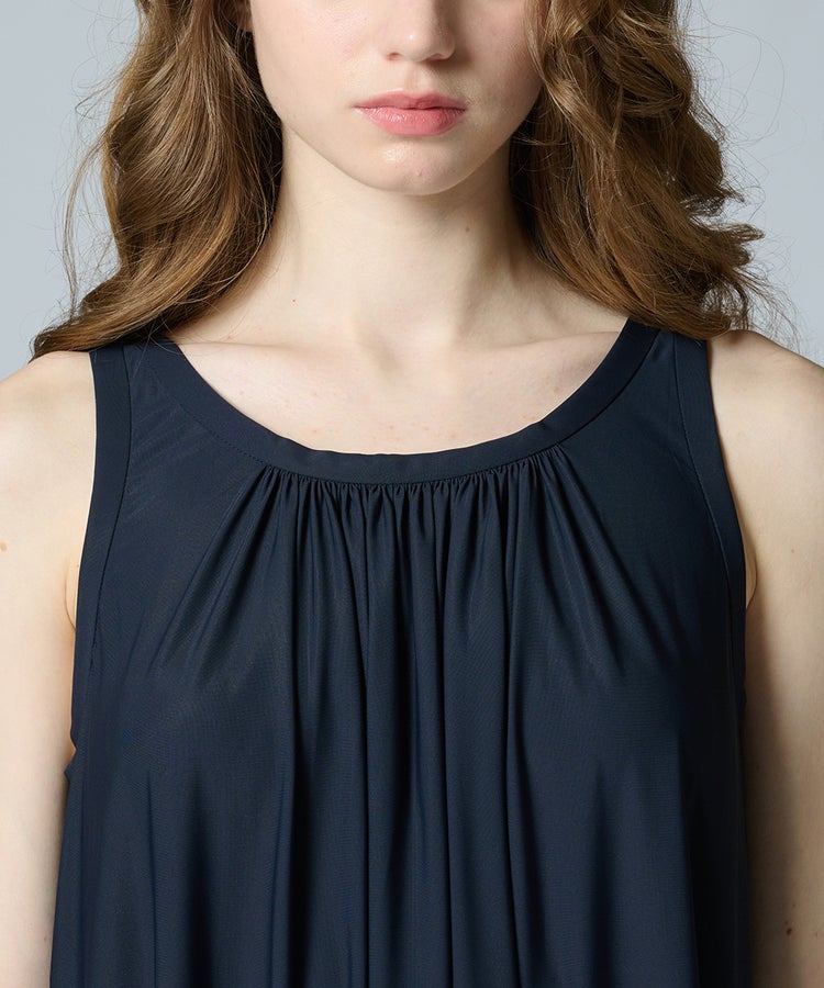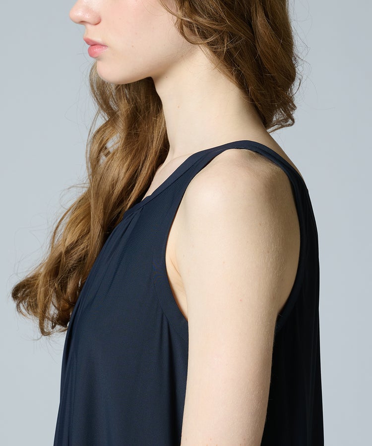 さりげない透け感と柔らかな表情が、女性らしさを引き立てるワンピース。美しいドレープが縦のラインを強調し、自然なスタイルアップを叶えるシルエットに仕上げました。1枚でサマになる使い勝手のよさも魅力。カラーは、柔らかな印象のホワイトと、落ち着いたシックさのあるネイビーの2色展開で、気分やシーンに合わせた色選びが楽しめます。