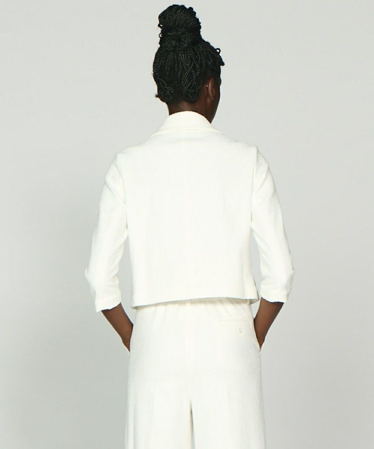 リング糸を使った表情豊かなコットンツイード。ショート丈でモードに着こなせ、上質さの中にあるナチュラルな風合いが好印象。