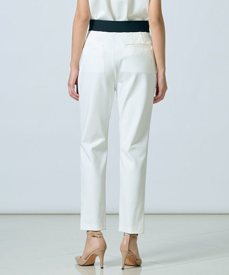 ナイロンハイマルチの糸を使用し、段ボール組織で仕上げたパンツ。ストレッチ性があるため、動きやすくストレスフルな着心地が魅力です。また、肌あたりは柔らかでありながらハリ、コシがあるため、きちんと感のある佇まいが叶うのもポイント。細身のストレートシルエットがスタイリッシュな印象で、アンクル丈はすっきりとした足元を演出してくれます。