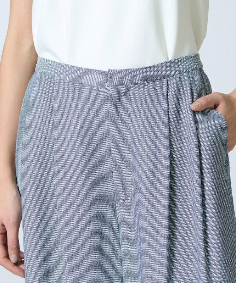 イタリア・リネアエッセ社の素材を使用したワイドパンツ。ヴィスコース100%で、ドビー織りのオックスシャンブレー生地となっています。絶妙な落ち感があり、ラグジュアリーさも持ち合わせているのが魅力。ワイドシルエットでリラクシンながらも、どこか華やかさのある一本です。