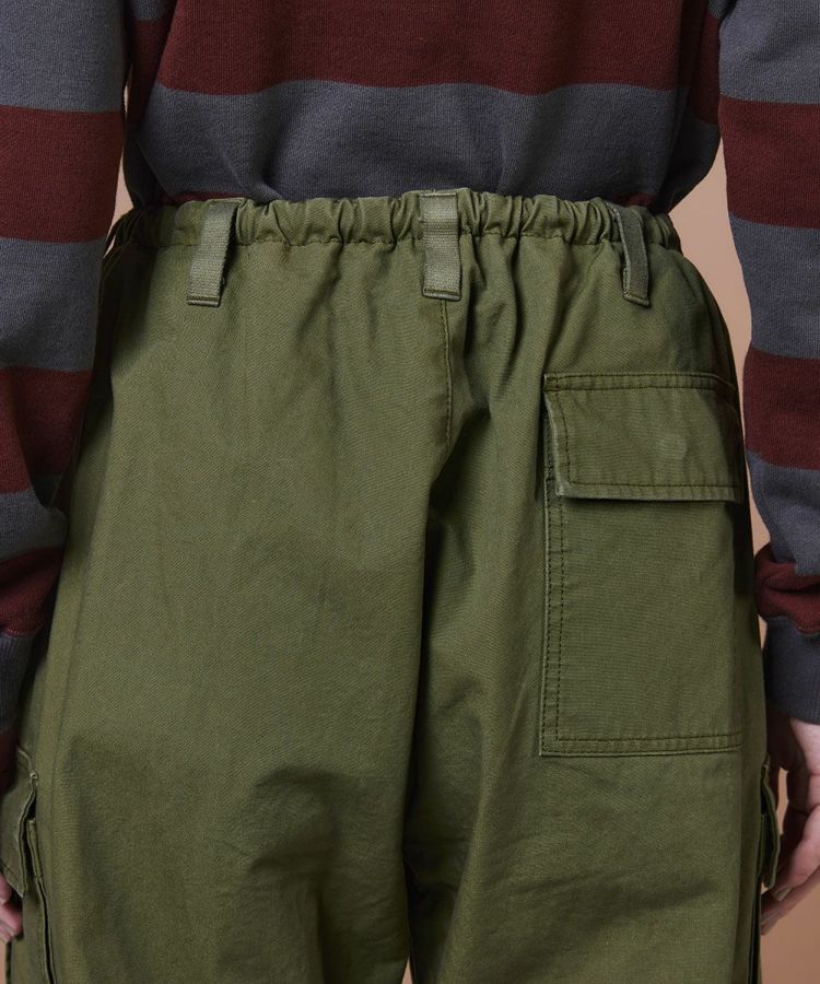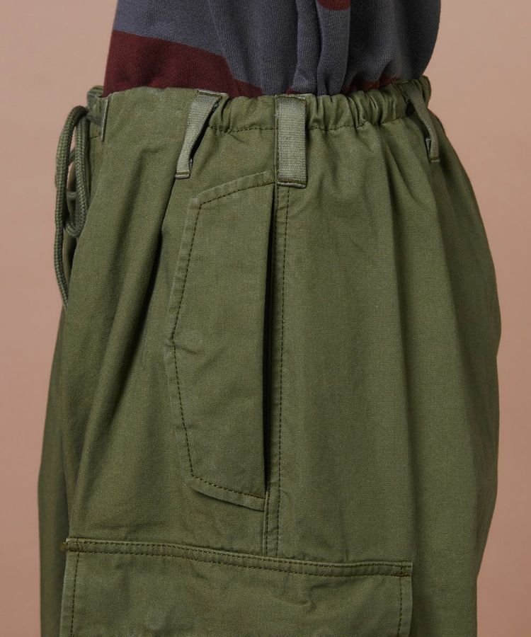 ハリ感のある素材に、染色加工でヴィンテージライクな風合いを加えたミリタリーパンツ。使い込む内にデニムのようなタテ落ち感が生まれ、経年変化も楽しめる一本です。ウエストや裾部分は絞ってシルエットの調整が可能。同素材のジャケット(型番:0204320253)と合わせれば、本格的なミリタリースタイルが完成します。