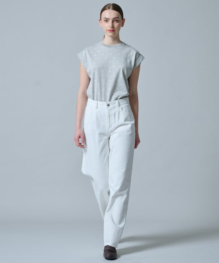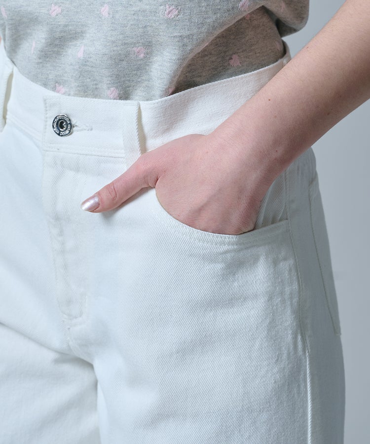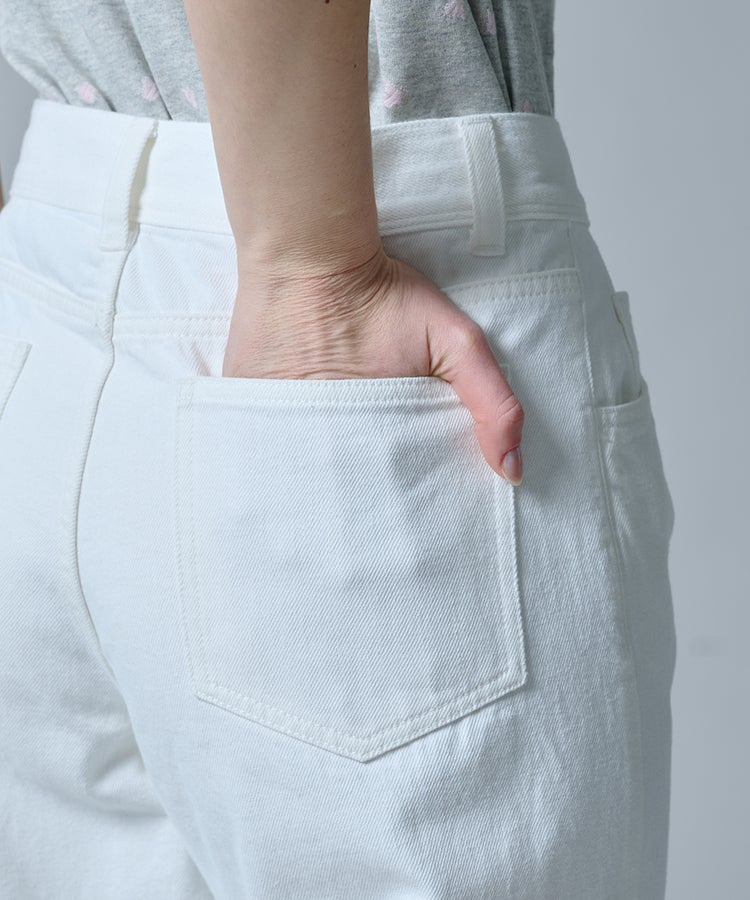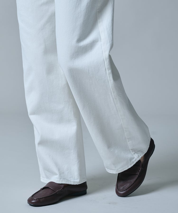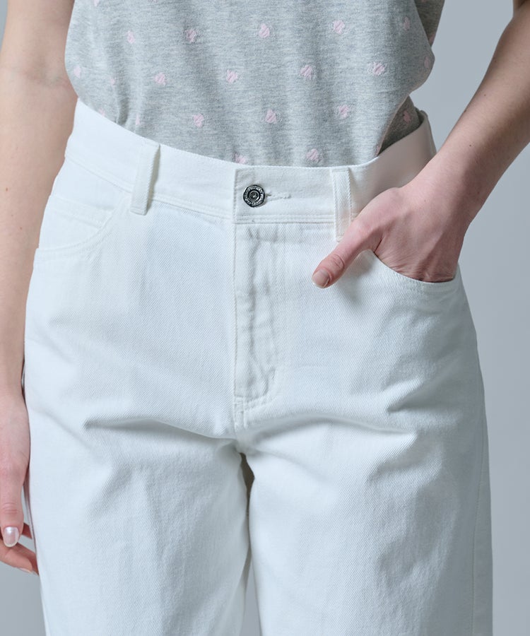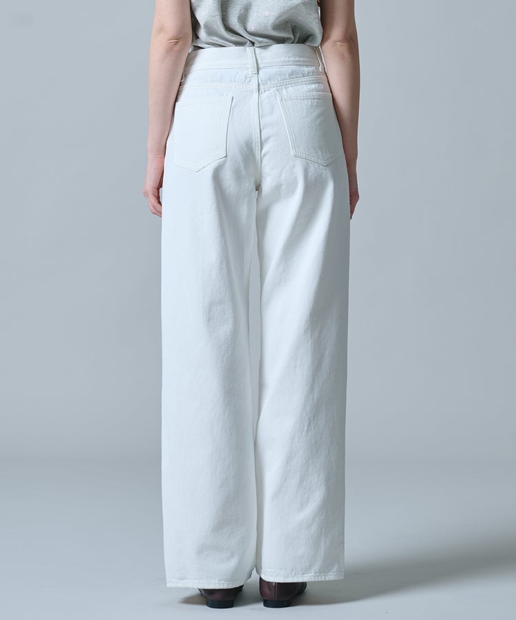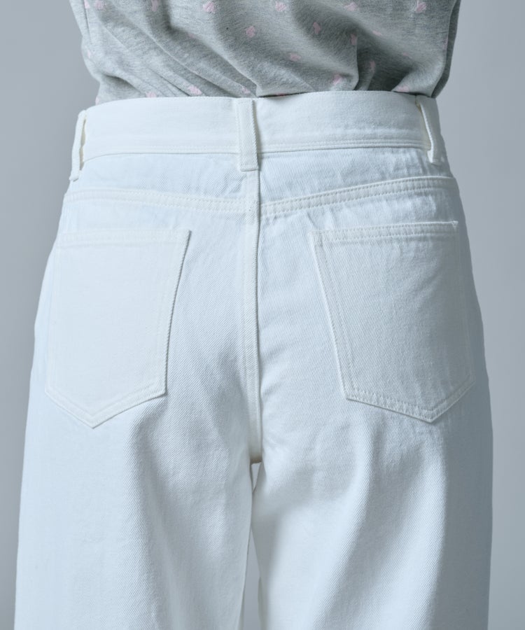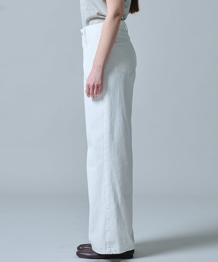 ヴィンテージのようなナチュラルな風合いが魅力のホワイトデニム。ゆとりのあるワイドシルエットが、リラックス感のある大人のムードを演出します。脚のラインを拾いにくく、さりげなく体型をカバーできるのも嬉しいポイント。カジュアルなトップスはもちろん、パンプスを合わせればレディライクなニュアンスをプラスしたスタイリングが完成します。