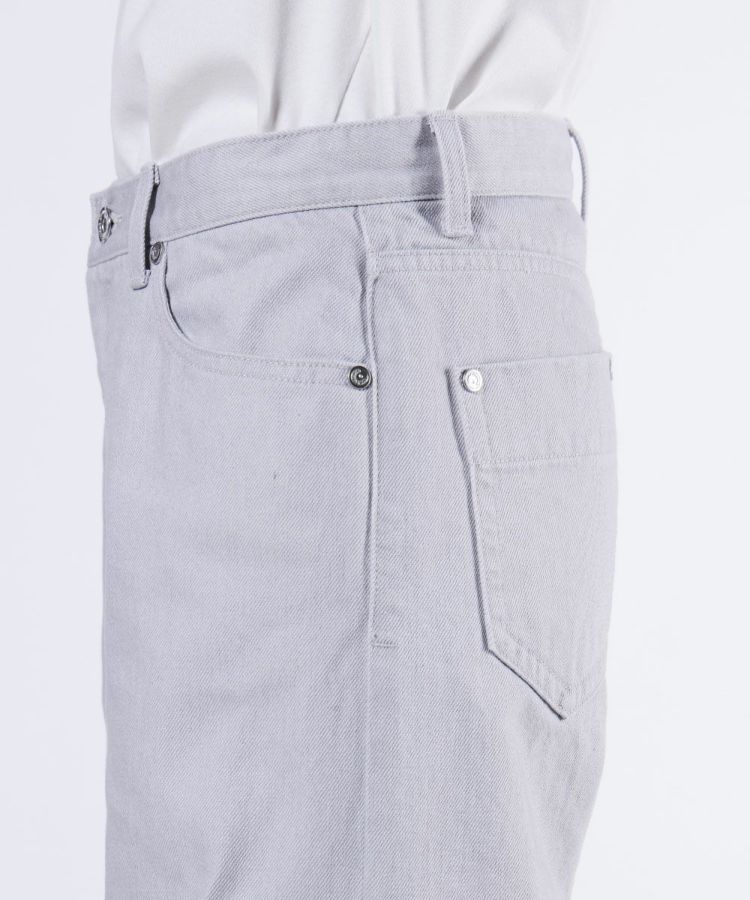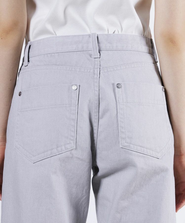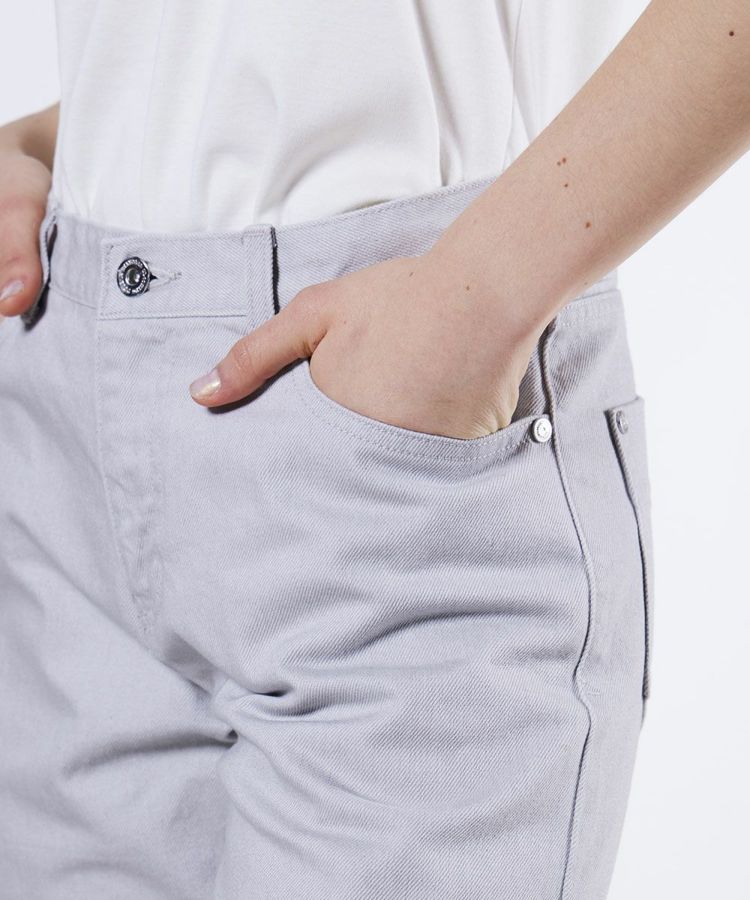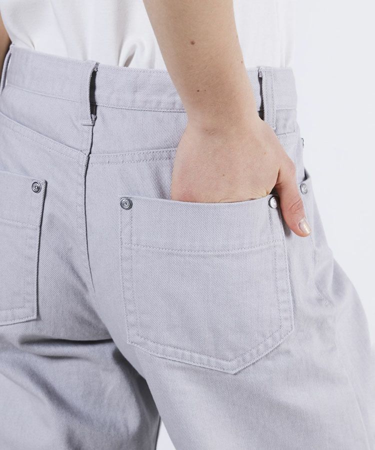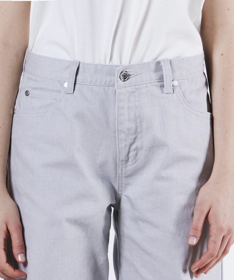 ライトグレーのカラーリングが涼しげな印象を与えるデニムパンツ。ムラ染めの風合いが特徴的なデニム素材にバイオ加工を施し、ヴィンテージのような味わい深い表情に仕上げました。腰まわりはすっきりとしたシルエットで、全体の印象をスマートに演出。同素材のノースリーブデニムジャケット(型番:0204100253)と合わせると、統一感のあるセットアップスタイルを楽しめます。