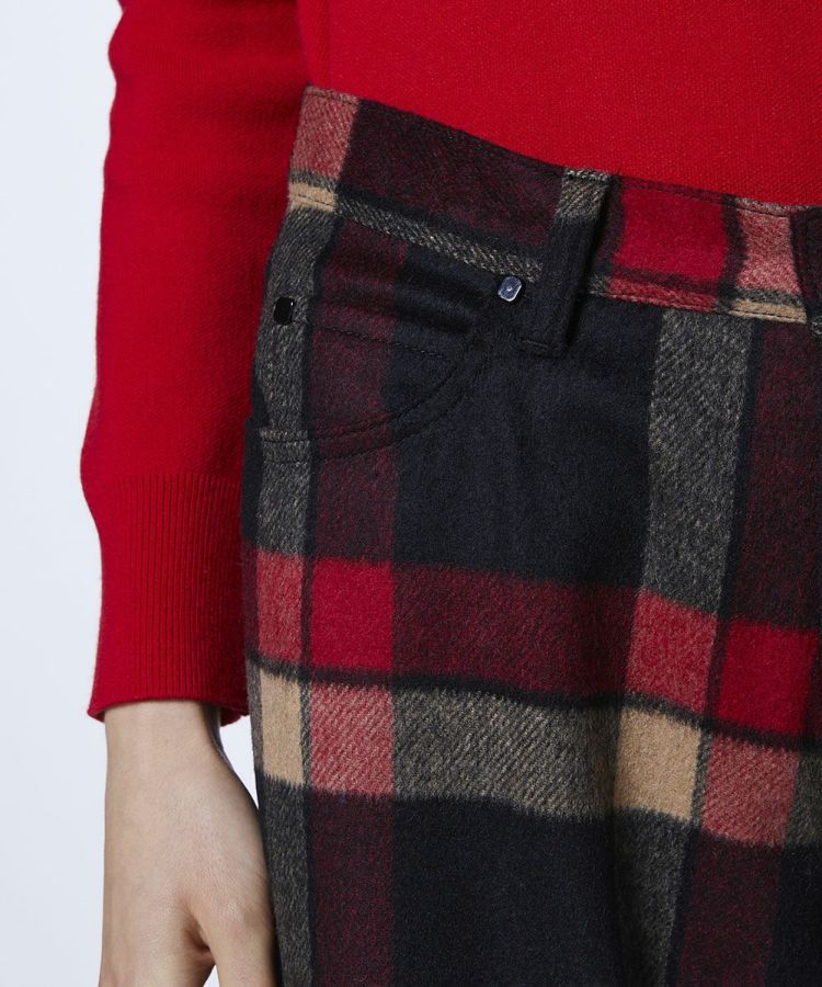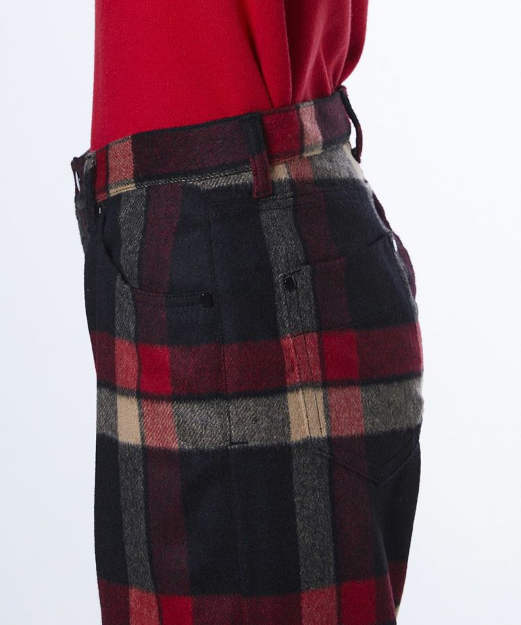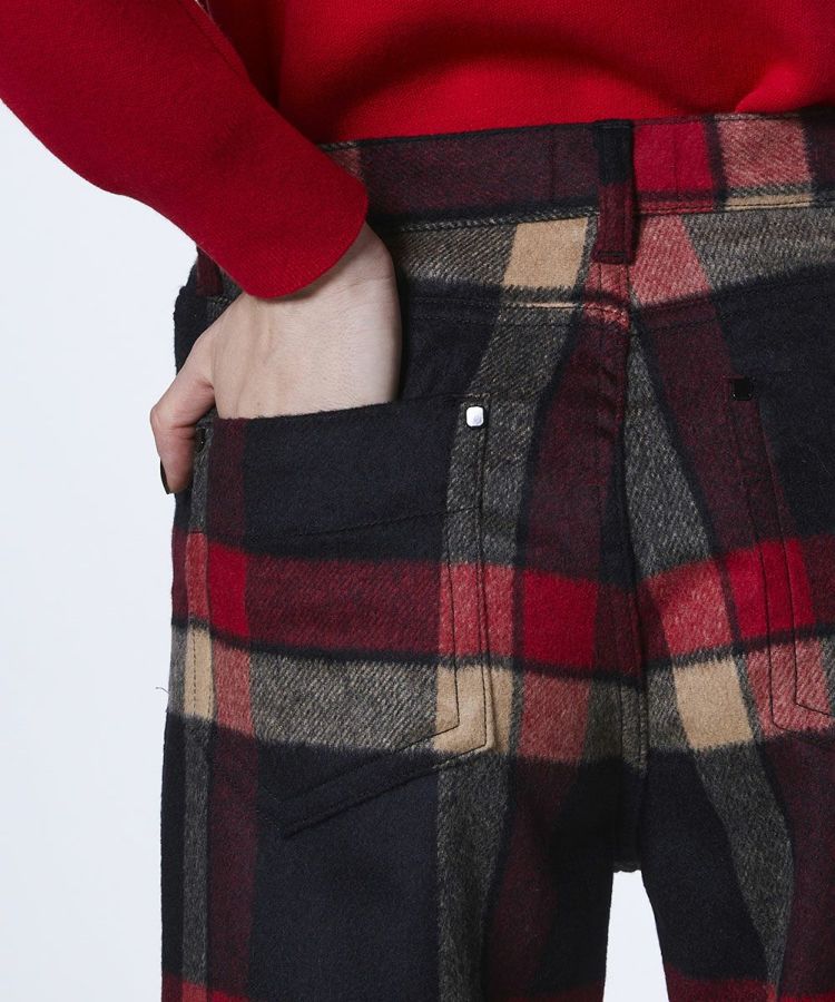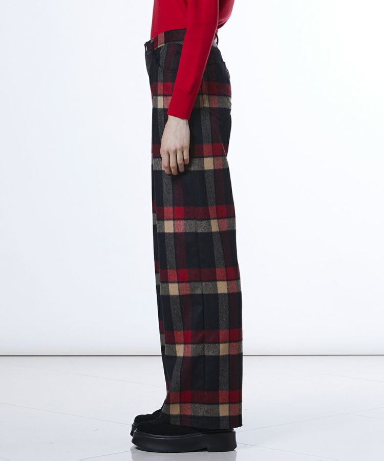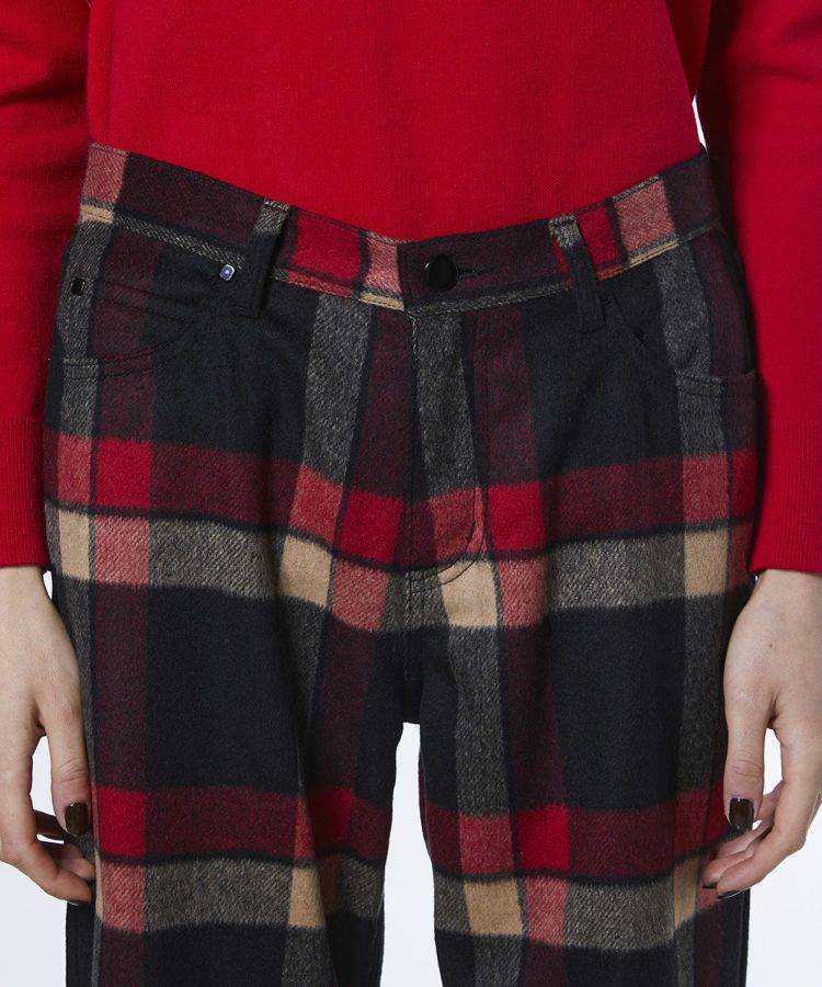 大柄チェックが目を惹く、トラッドムードたっぷりのパンツ。すっきりとしたストレートシルエットで、どんなスタイルにも合わせやすくロングシーズンで愛用できます。あたたかみのあるウール素材を採用しているので、肌寒い季節も快適。チェックの配色に合わせてトップスをコーディネートすれば、統一感のある洗練されたスタイルが完成します。