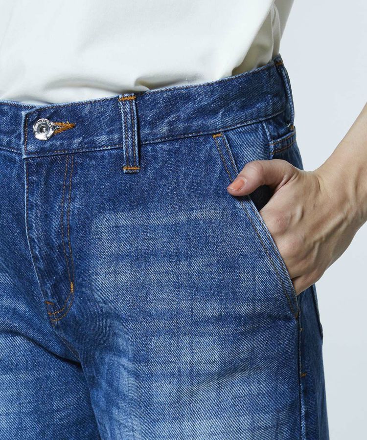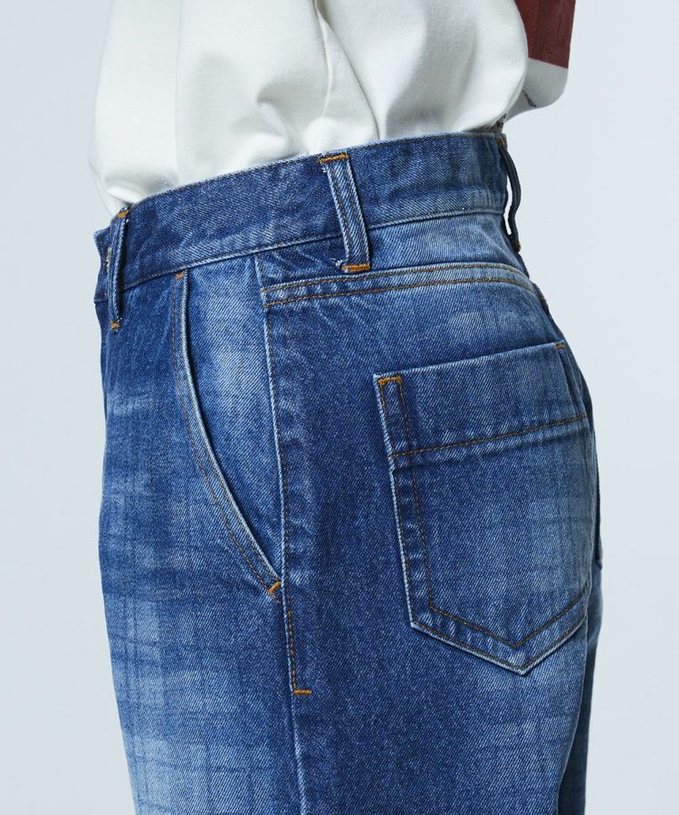 弱テンションで織り上げた生地が、ヴィンテージライクな表情を引き立てるデニムパンツ。独特なムラ感にさりげないチェック柄を重ね、個性の光るデザインアクセントをプラスしました。縦のラインをきれいに見せるストレートシルエットで、すっきりとした印象に。ひと味違うデニムは、同素材のジャケット(型番:0205350261)と合わせることで、存在感のあるセットアップスタイルが完成します。