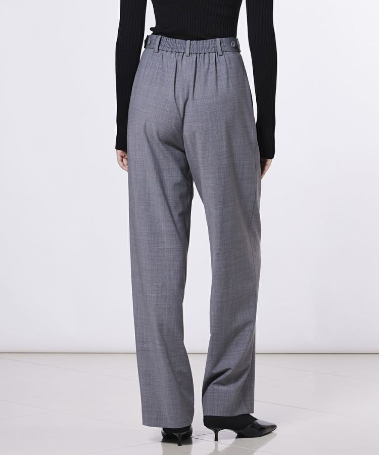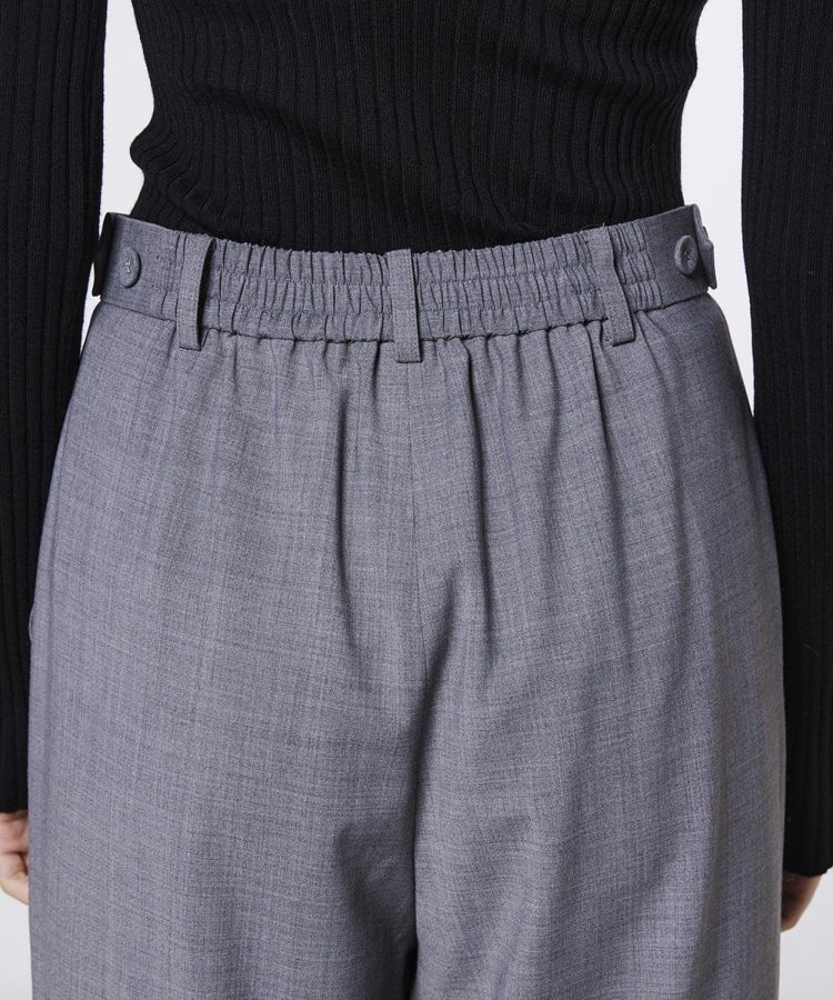 セミワイドシルエットで、シーンを選ばず使える万能なパンツ。肌離れの良い素材を使用し、さらりとした肌ざわりが心地よい一着です。バックウエストはゴム仕様で、快適な履き心地も魅力。同素材のシャツ(型番:0304040254)と合わせれば、洗練されたセットアップスタイルが完成します。
