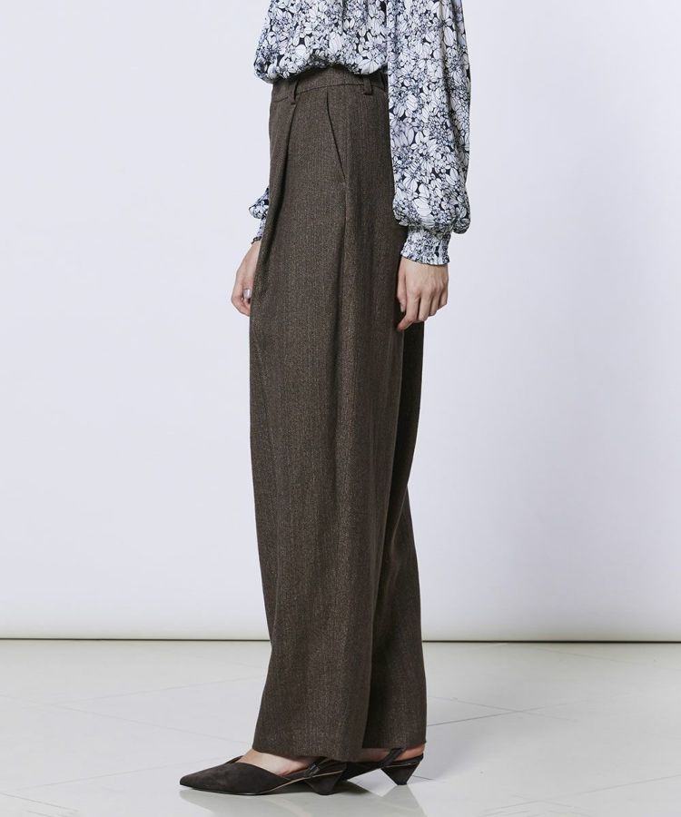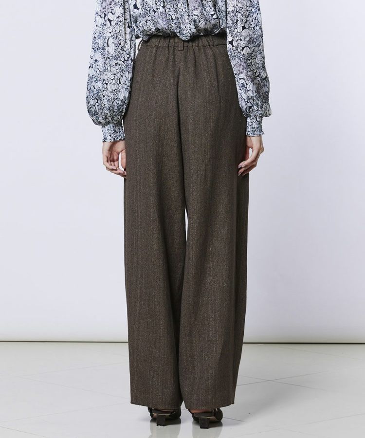 程よくゆとりのあるシルエットで、さりげなくスタイルカバーも叶うパンツ。ウエストにタックを施したイージーパンツ仕様で、腰まわりに程よい余裕があり、動きやすさと快適な穿き心地を実現しました。リラックス感がありながら品よく見えるのも嬉しいポイント。デイリーからオフィスカジュアルまで幅広く活躍し、同素材のジャケット(型番:0305240261)やジレ(型番:0304242261)と合わせれば、オケージョンシーンにも対応できる一本です。