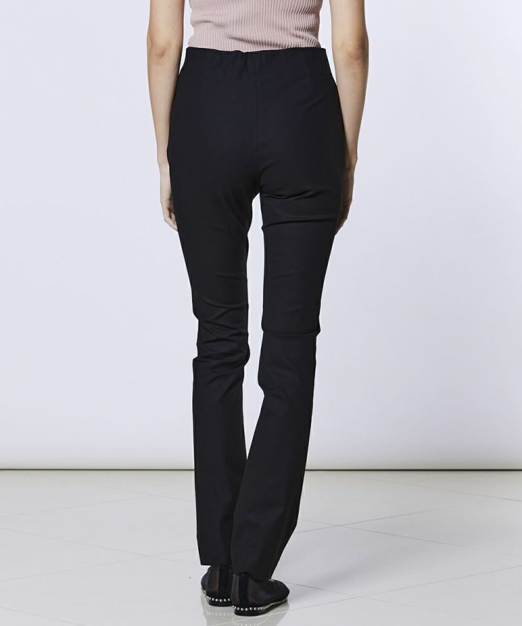 ブラックデニムならではのクールなムードが漂うパンツ。ストレッチ性に優れた素材を使用し、程よいフィット感と動きやすさを兼ね備え、デイリーに快適に着用できます。タイトなシルエットがサイドやバックから見たヒップラインを美しく引き立て、すっきりとした印象に。シーズンを問わず活躍する、汎用性の高い一本です。