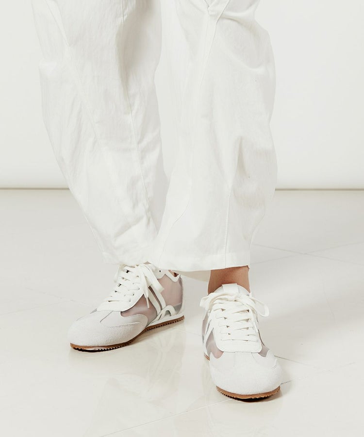どこか懐かしさのある、バルーンシルエットがかわいいパンツ。タックとバックの絞りのギミックで立体的に仕上げることで野暮ったくならず、現代的に着用できるよう仕上げました。ハイウエストなのもポイントで、トップスをインしてもしなくても、コーディネート全体のシルエットにメリハリが出るのが魅力。ベーシックなカラーなので着まわし力も抜群です。
