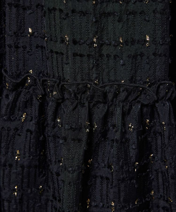 エレガントな雰囲気をまとったティアードスカート。ゴールドのラメを織り込んだジャカード素材を使用し、さりげない煌めきが上品な華やかさを演出します。足元はパンプスと合わせるとレディライクな印象に。同素材のブラウス(型番:3804060253)とセットで着用すれば、ワンピース風のスタイルも楽しめる一着です。