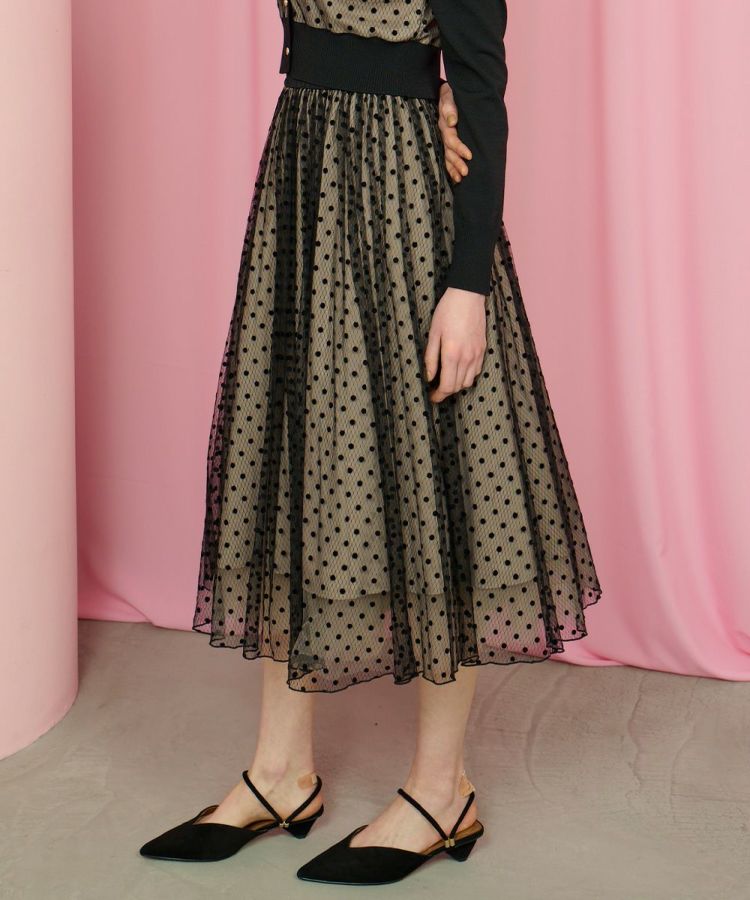 CORCOVADO / チュールドットフロッキー フレアスカート