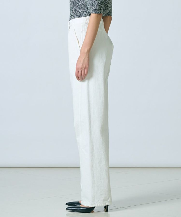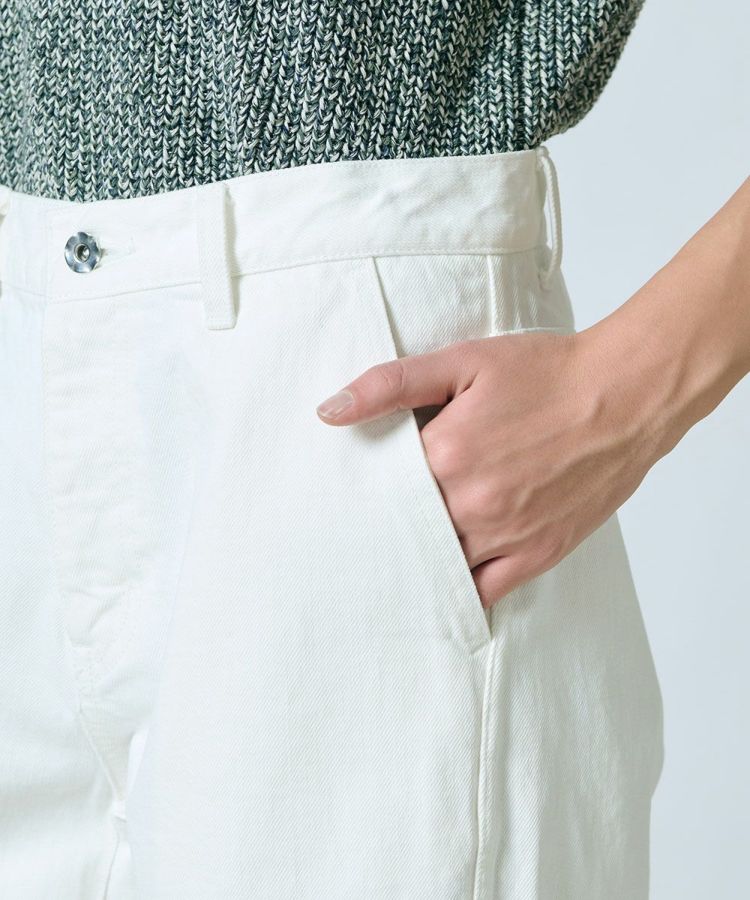 爽やかで上品なムードを演出してくれるホワイトデニムパンツ。オーガニック認証を取得したコットンで作っており、薄すぎず厚すぎない13.8オンスなので季節を問わず活躍します。柔らかさがありながらも、バイオ加工で毛羽立ちしにくいのもうれしいポイント。程よいワイドシルエットで、ゆったりとリラクシンな穿き心地です。