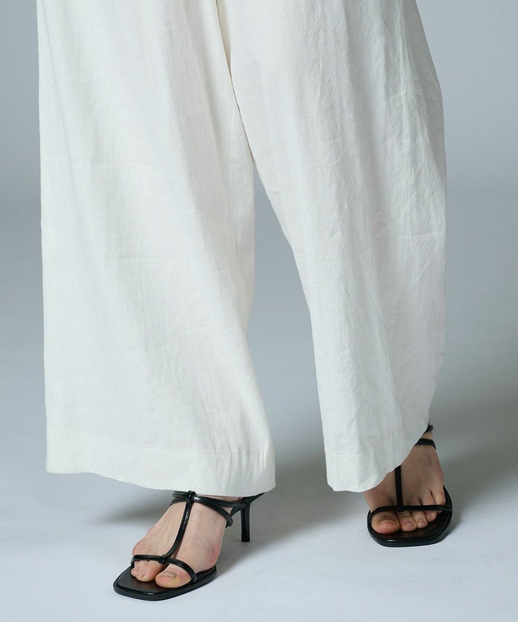 ゆとりのあるワイドシルエットが、大人のリラクシンなムードを演出するパンツ。ウエストはゴム仕様に加え、ストレッチ性のある生地を採用することで、長時間の着用でも快適に過ごせるように仕上げました。シンプルなデザインで、トップスを選ばず取り入れやすいのも魅力。カジュアルスタイルにはもちろん、きちんと感を求められるビジネスシーンにもなじみます。