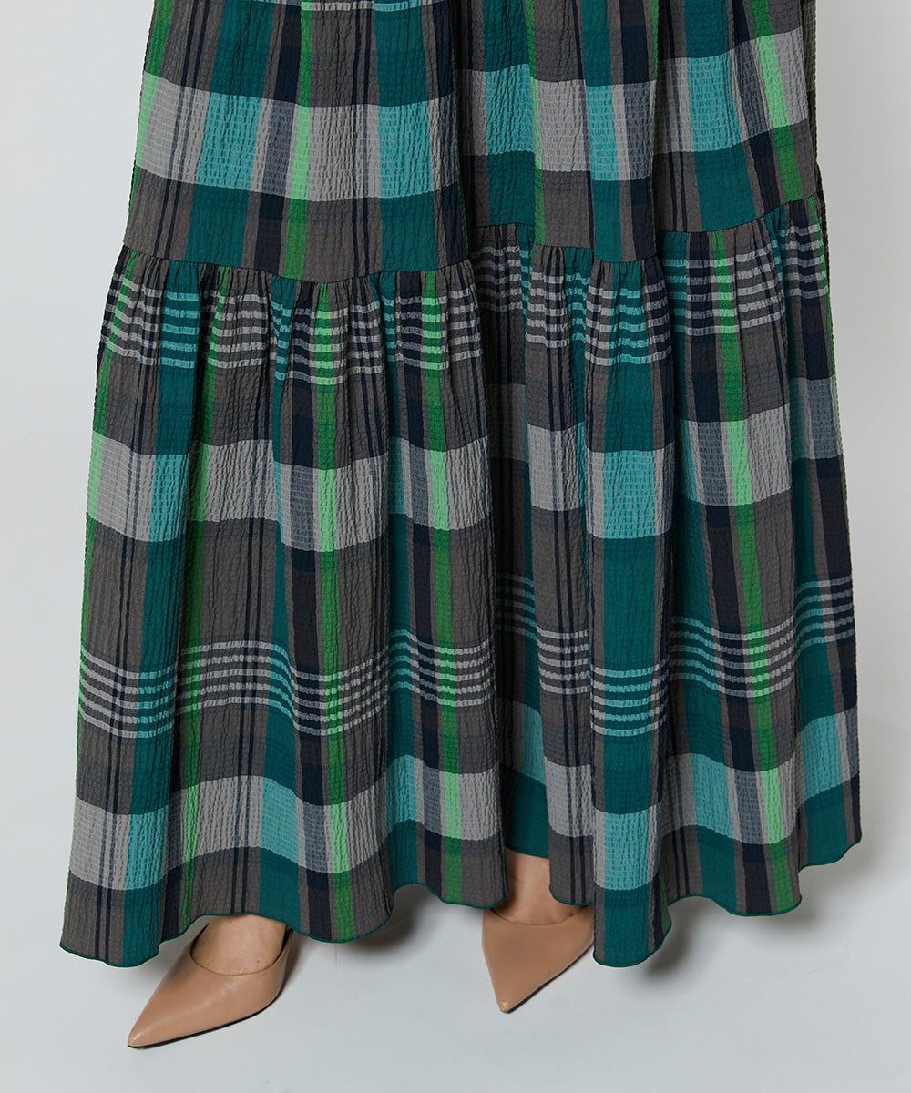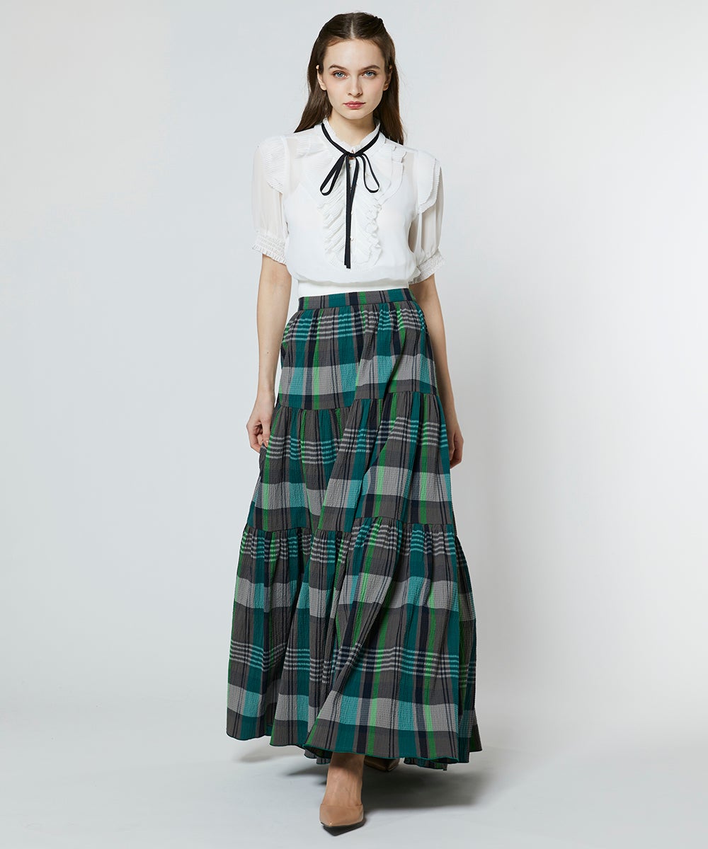 CORCOVADO / モノトーンフラワー フリルサテンスカート