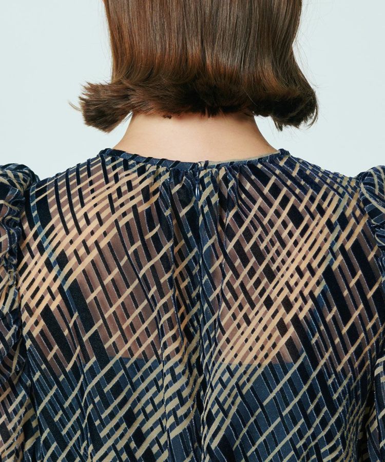 パフスリーブがエッジーでフェミニンな印象を与えてくれるワンピース。シフォン生地ながらも、ネイビーを基調にしたカラーリングでシックなムードに仕上げました。ウエストは高めに設定しているため、脚長効果は抜群。パフスリーブが二の腕をさりげなくカバーしてくれるのもうれしいポイントです。シルエットが美しく、これ一枚でスタイル良く見せてくれる優れもの。