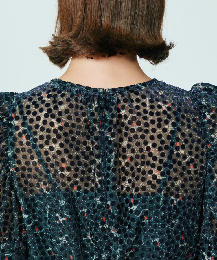 シックなカラーリングで仕上げたドット柄のシフォンワンピース。ところどころに赤の挿し色が入ったドットは、マットな質感がポイント。柄物でありながら甘くならず、大人っぽく着られるのが魅力です。また、パフスリーブはフェミニンでエッジーなアクセントに。ふんわりと女性らしいエレガントさがありつつも、メリハリのあるシルエットでスタイリッシュな佇まいを叶えてくれます。