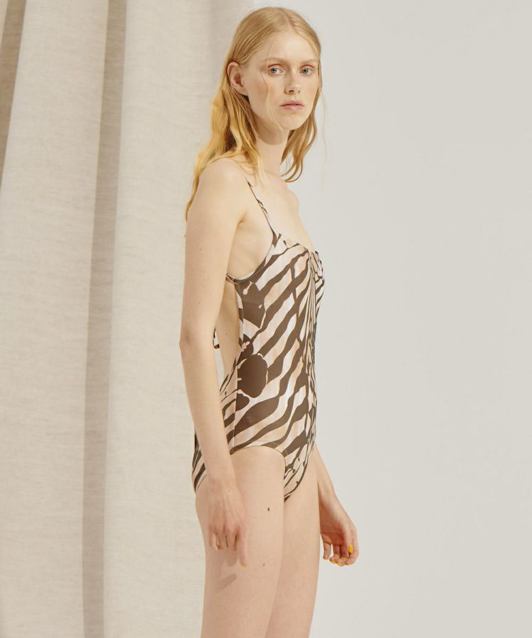大胆なバックスタイルがセンシュアルなムード漂う、大人リゾートなスイムウェア。気になるウエストのラインをしっかりとカバーしてくれる、ワンピースタイプもうれしいポイントです。ノスタルジックなムードを持つ2種類の総柄が、レトロかつシックな印象を実現。デニムやフレアスカートと組み合わせると、エレガントさがプラスされたワンランク上のコーディネートが楽しめます。