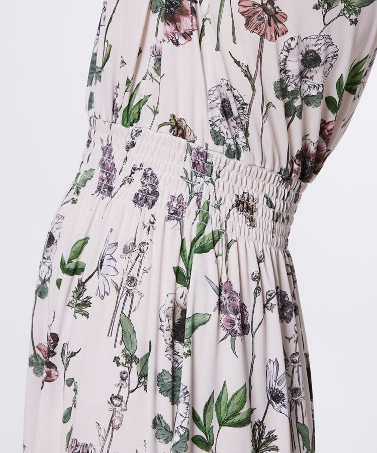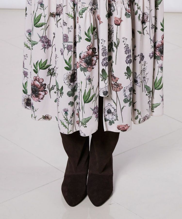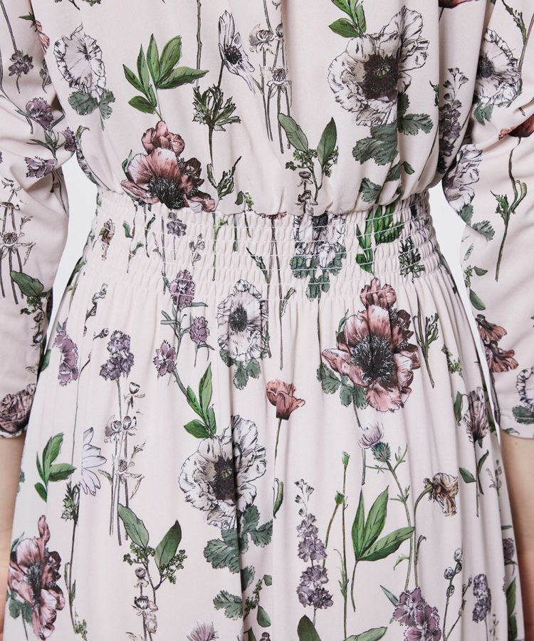 胸元のボウタイリボンが華やかなアクセントを添える、大人のフェミニンワンピース。ウエストに施したシャーリングが自然にスタイルアップを叶え、女性らしいシルエットを演出します。素材は肌離れの良いポリエステルジャージを使用し、さらりと快適な着心地で着脱もスムーズ。1枚で着映えする主役級アイテムは、ワードローブに備えておきたい一着です。