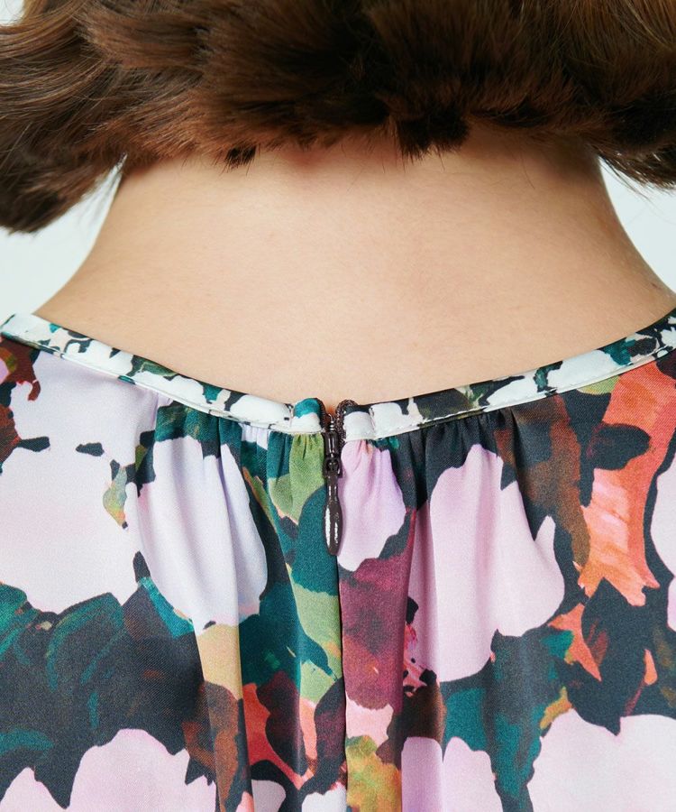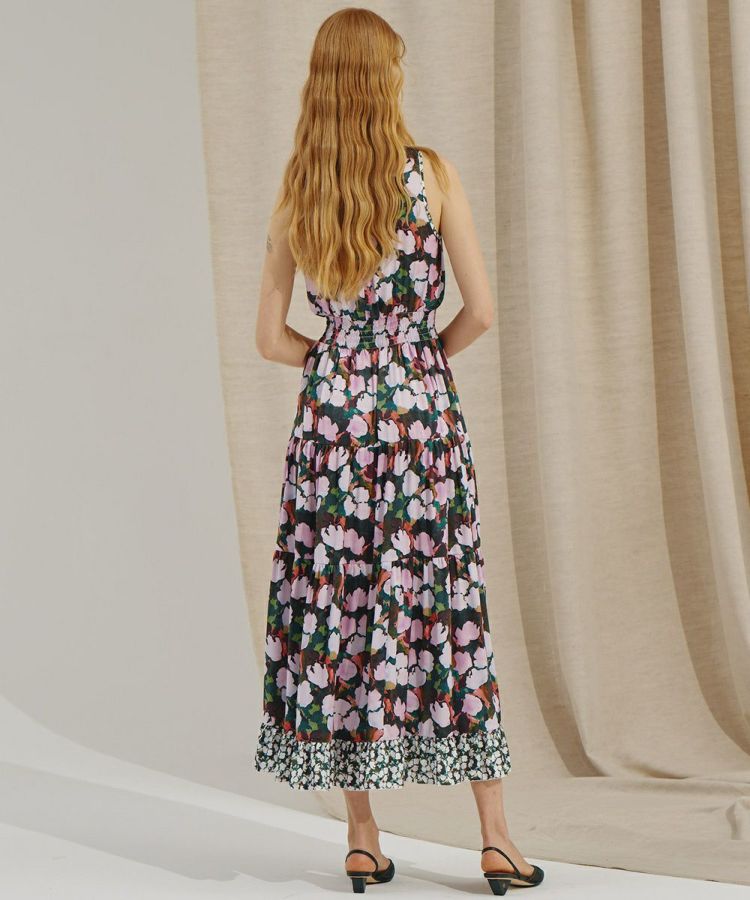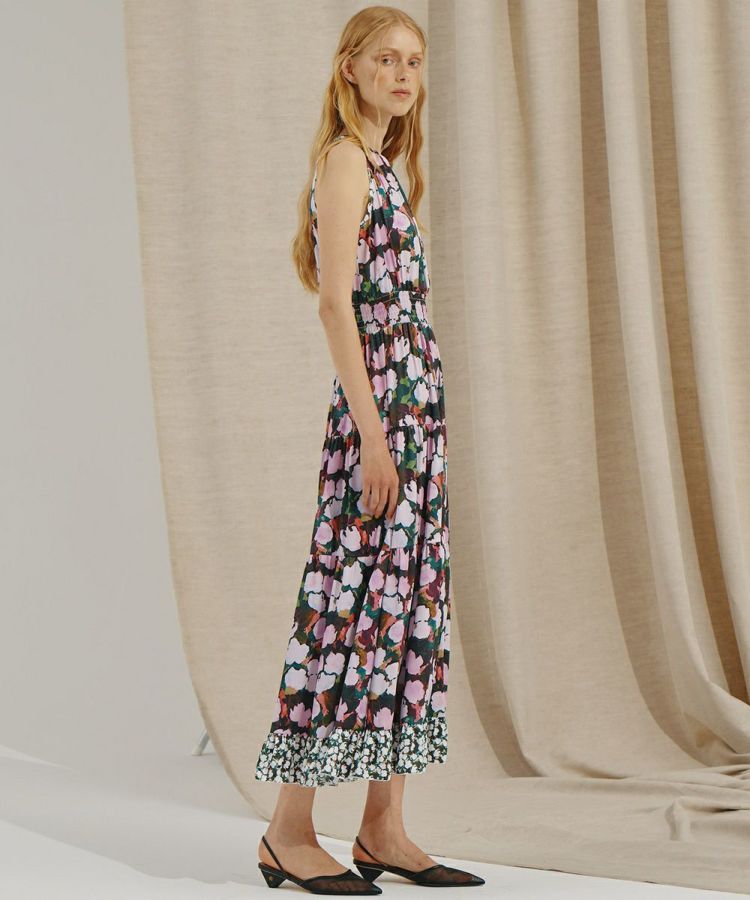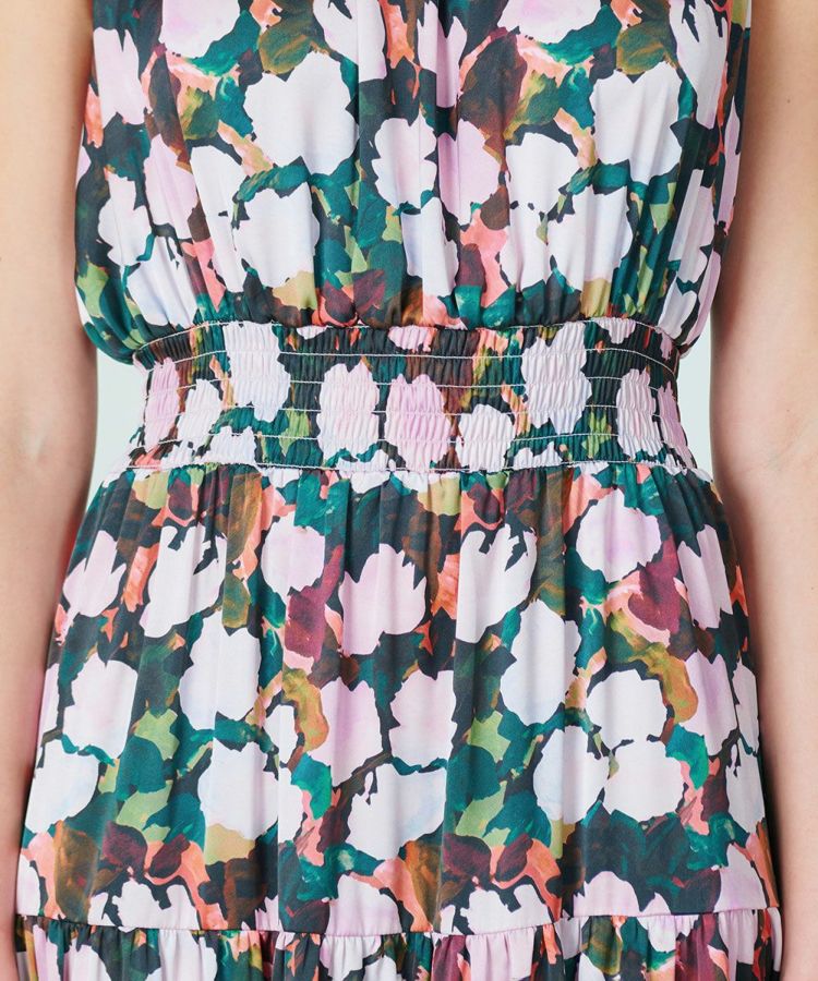 2つの大胆な柄の組み合わせが目を惹く、ノースリーブワンピース。シフォン素材を使用し、軽やかで柔らかいフェミニンなムードに仕上げました。ノースリーブのヘルシーな肌見せとウエスト高めの位置に設定したシャーリングが、スタイルアップ効果を実現。主役級ワンピースが一枚あれば、日常のコーディネートに華やぎを与えてくれること間違いなしです。